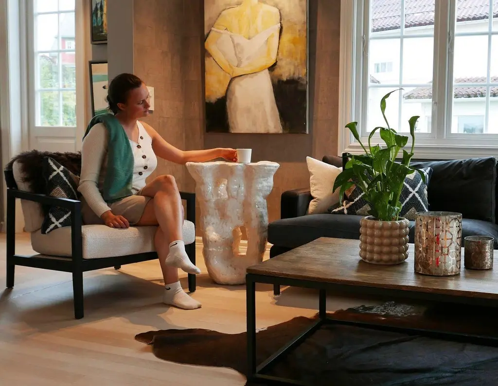 Unique MOSI sculptural sidetable by Marthine SpinnangrOne of a KindDimensions: D 28 x W 24 x H 48 cmMaterials: CeramicDifferent glaze types availableMOSI is inspired by a morf sketch process inspired by nature walks and human poses to capture an aliveness in the expression. The name MOSI is inspired by the moss that surrounded the trails on by the lakes, sea and mountain hikes. In Norwegian moss can be written MOSI and the biomorphic sculptural tables also have a tiny bitt of moss mixed into the ceramic glazes.Marthine Spinnangr is a designer based in Oslo, Norway. Her education includes a Bachelor in Product Design from Oslo Metropolitan University and a Bachelors of Business Administration from University of San Fransisco, California. Spinnangr´s design practice focuses on experimentation, form exploration, intuition, biomorphism and emotional design.Marthine strives to create objects that are in the intersection between art and design.