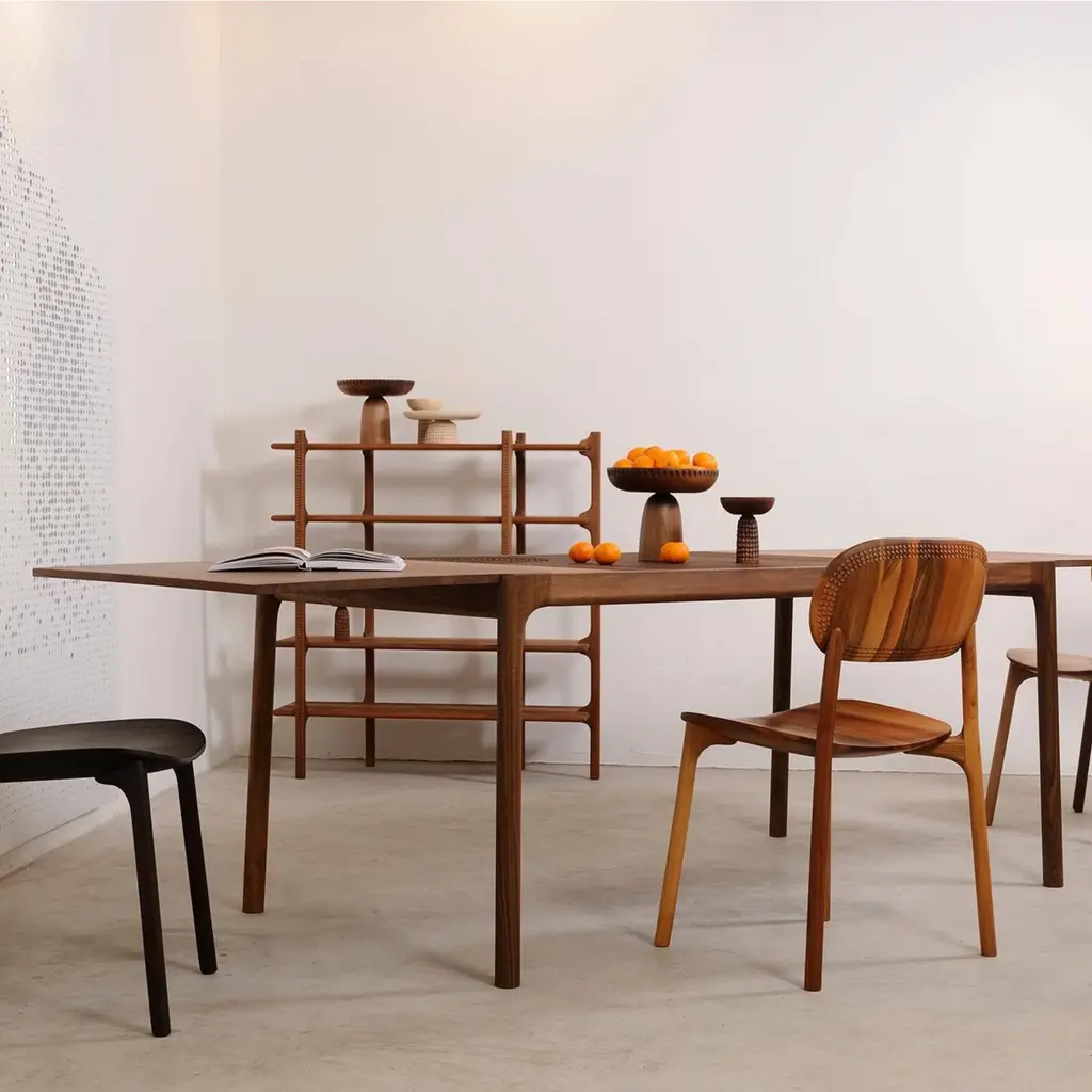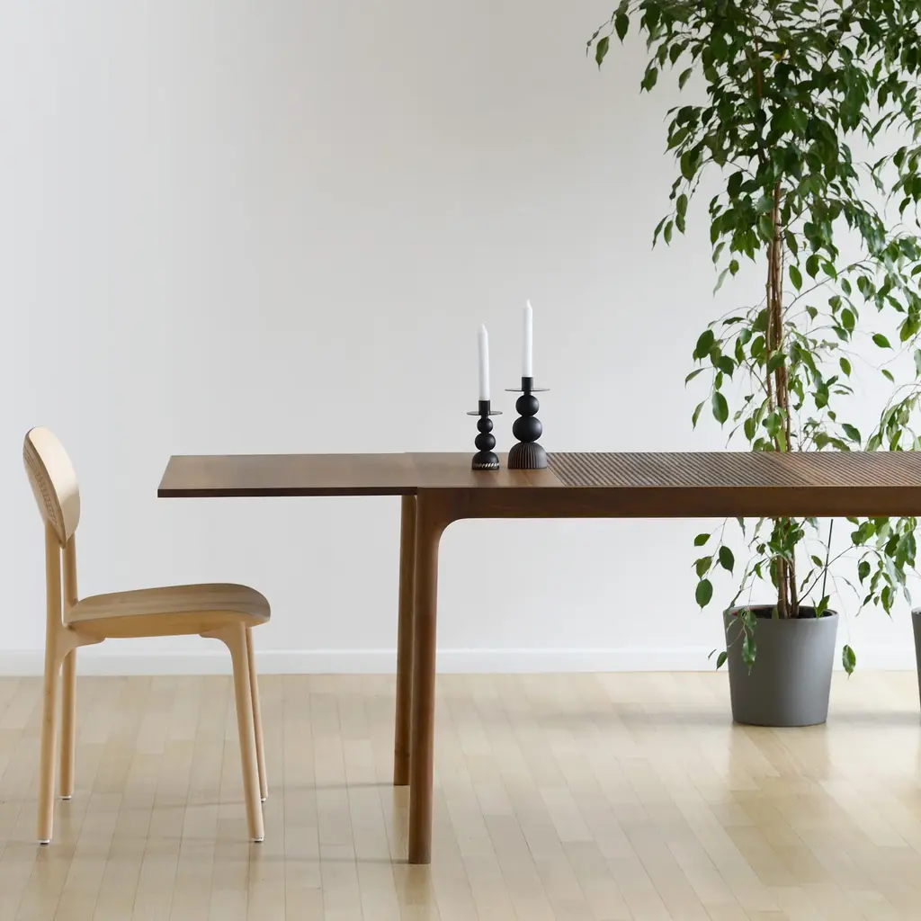 Along with Unna’s graceful lines, Zanat adds an extendable version of designer Monica Förster’s dining table with extension leafs in a lace-like pattern. Fitting into the middle of the tabletop, the hand-carved insets catch the play of light and provide a tactile counterpoint. Completely realized in sustainably sourced solid wood, the table offers versions with 1 or 2 extension leafs to match the color of the table (or contrast in black and white maple), stored underneath the tabletop and easily deployed with the handmade extension mechanism.