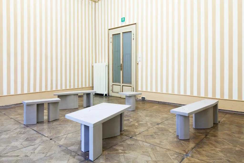 Established in 2016 architects Batool Alshaikh, Maitham Almubarak, and Christian Vennerstrøm Jensen, bahraini—Danish is a collective that uses cultural differences, both social and professional, as a means to create. The exhibition will include seven coffee and side tables from the series Unsighted Tables made of Giallo Avorio marble. Each table is a rectangle cut in a way that can be placed against any wall in a room. With all sides cut and aligned to an invisible rectangle, the tables are inscribed in a space within the space and make-up a group of familiar objects with an implicit logic. This project was produced with the support of Casone Group, experts in marble production in Italy.They represented Bahrain in the Venice’s Architecture Biennale in 2018 and their work is featured in the 58th Venice Art Biennale in 2019.