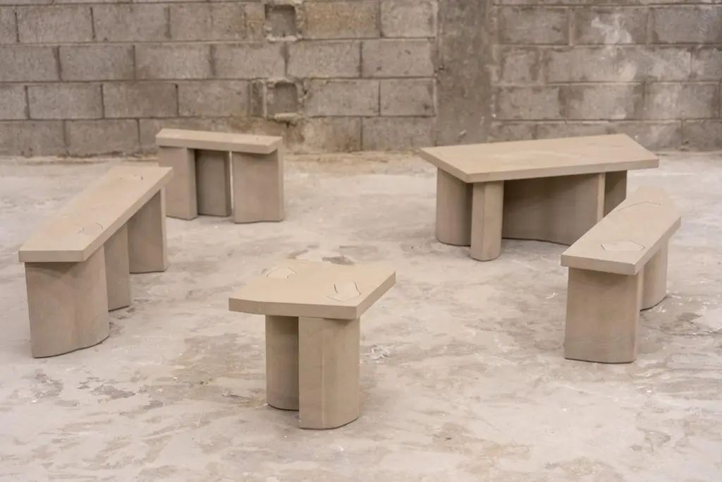 Established in 2016 architects Batool Alshaikh, Maitham Almubarak, and Christian Vennerstrøm Jensen, Bahraini, Danish is a collective that uses cultural differences, both social and professional, as a means to create. The exhibition will include seven coffee and side tables from the series Unsighted Tables made of Giallo Avorio marble. Each table is a rectangle cut in a way that can be placed against any wall in a room. With all sides cut and aligned to an invisible rectangle, the tables are inscribed in a space within the space and make-up a group of familiar objects with an implicit logic. This project was produced with the support of Casone Group, experts in marble production in Italy.They represented Bahrain in the Venice’s Architecture Biennale in 2018 and their work is featured in the 58th Venice Art Biennale in 2019.