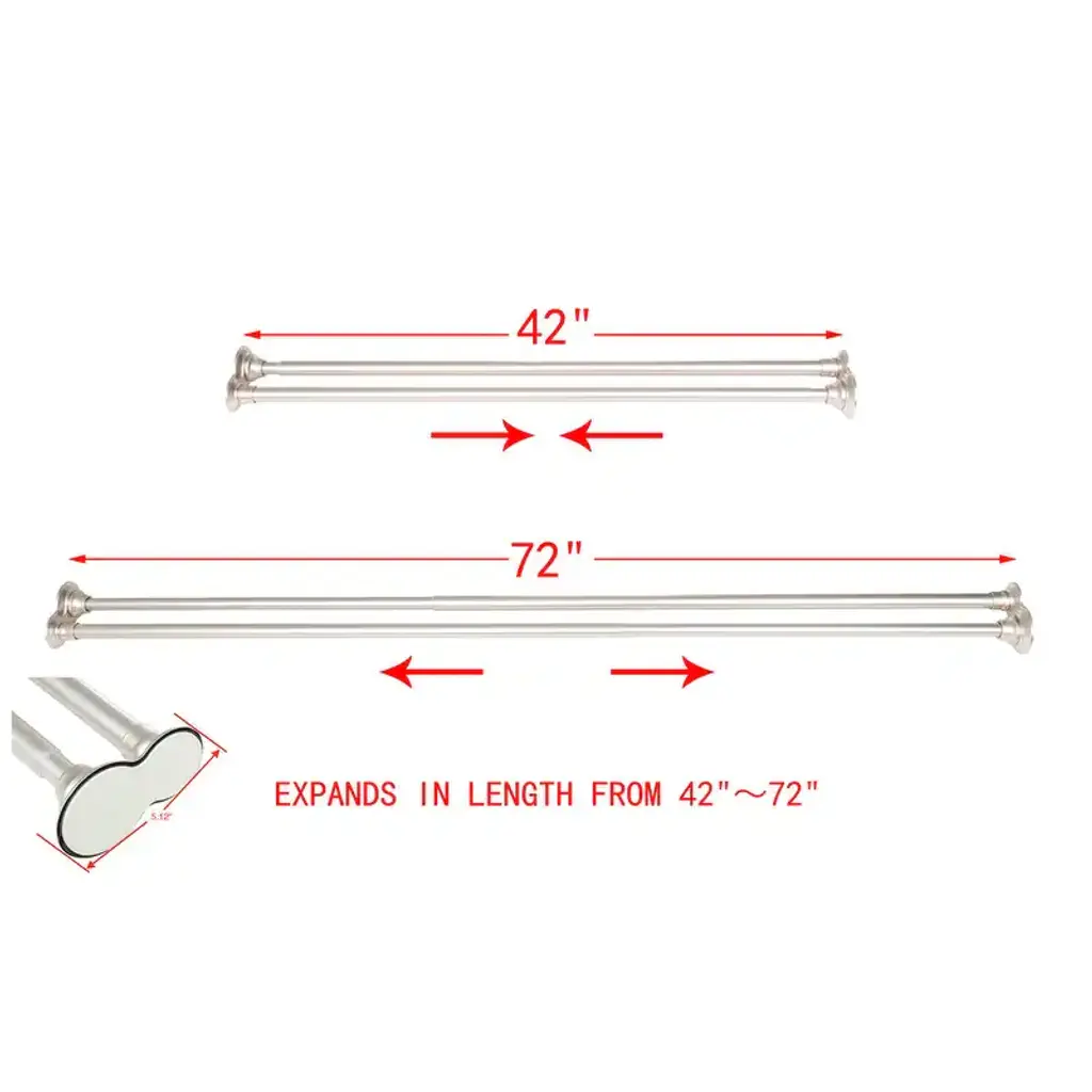 Upgrade your bathroom and create a serene shower space with Utopia Alley's curtain rods. These no-drill curtain rods are perfect for hanging your shower curtains without drilling holes or using screws. These adjustable and retractable rods can be stretched to fit your stall or shower and are made from high-quality, rust-proof aluminum. This ensures they're durable and long lasting, making them an excellent investment for your home. With their smooth transition ring and seamless movement, you'll enjoy a hassle-free shower experience. They come in a range of finishes, which can be easily matched to your decor. These rods require low maintenance, so just wipe them down with a damp cloth to keep them looking new. Don't let your old, corroded shower rod spoil the look of your bathroom. Upgrade to Utopia Alley's modern curtain rod for a tension-free and elegant shower experience. These rods can be used in any bathroom, regardless of the size, and the adjustability makes them the perfect choice for those who need a custom fit. Whether you're renovating your bathroom or just looking for an upgrade, Utopia Alley's screwless curtain rods will add a touch of elegance and convenience to your space. The stylish design and high-quality materials ensure they'll last for years to come. So why wait? Transform your bathroom today with Utopia Alley's easy-install curtain rods and enjoy a shower experience like never before. Five color options: Nickel, Chrome, Bronze, Gold & Black. BUILT TO LAST: Experience peace of mind with a dual shower rod that is built to last. Made with 100% aluminum, this double shower curtain rod is designed to withstand daily wear and tear, ensuring that it will serve you well for years to come. Say goodbye to flimsy and unreliable double shower rods and say hello to the quality you can count on. Use our shower double curtain rod that will keep your bathroom looking great and accommodate your needs. ADJUSTABLE LENGTH: Customize your bathroom with a shower rod that fits your unique style. This adjustable rod can fit any bathroom layout, ranging from 42" to 72", allowing you to avoid frustrating compromises. Its adaptable feature guarantees a precise fit in your bathroom space, providing an assurance of style and functionality. Elevate your bathroom's aesthetic with a shower curtain bar that adjusts to your needs without sacrificing form or function. RUST-RESISTANT FINISH: Elevate your bathroom's decor with a rust-resistant that adds sophistication and practicality. The shower curtain rod's sleek design is resistant to rust, ensuring it maintains looking good as new for many years. Keep your space looking great without worrying about water damage or stains on the shower rod. HASSLE-FREE INSTALLATION: Enjoy the convenience of hassle-free curtain rods without screw installation that's easy and straightforward. You can effortlessly extend and twist your new curtain rods without drilling or complicated tools, making installation a breeze. Save valuable time and energy while adding style and practicality to your bathroom. Get ready to experience the ultimate convenience with a shower rod that will elevate your space and make your life simpler. ABOUT US: UTOPIA ALLEY is a USA/woman-owned and operated business, you can shop with confidence for home decor, furniture bathroom accessories, and products with tailored needs. We believe in creating a stylish, comfortable space where you can relax, recharge, and feel inspired. Our products are expertly crafted to look visually beautiful, sophisticated, and constructed to last you for many years.