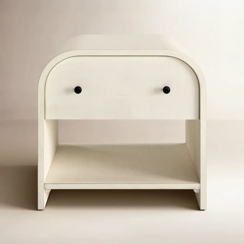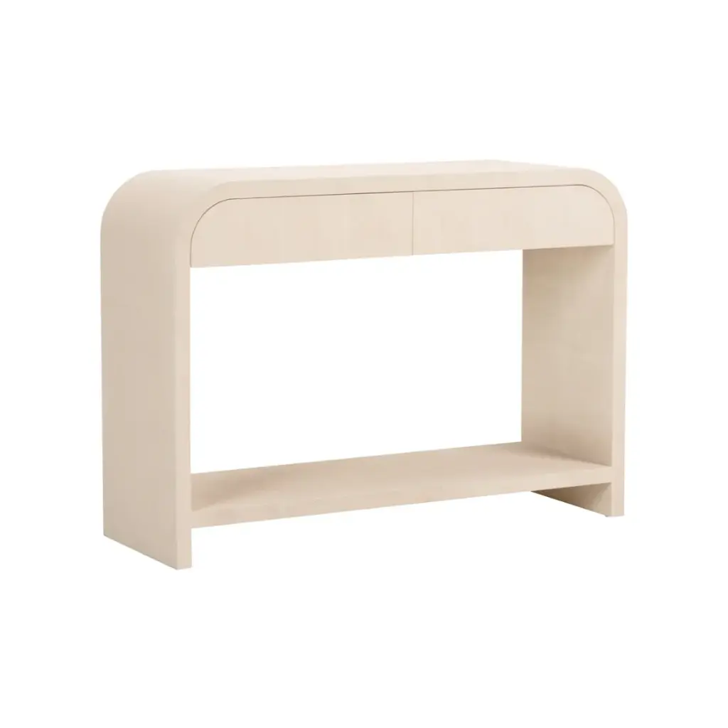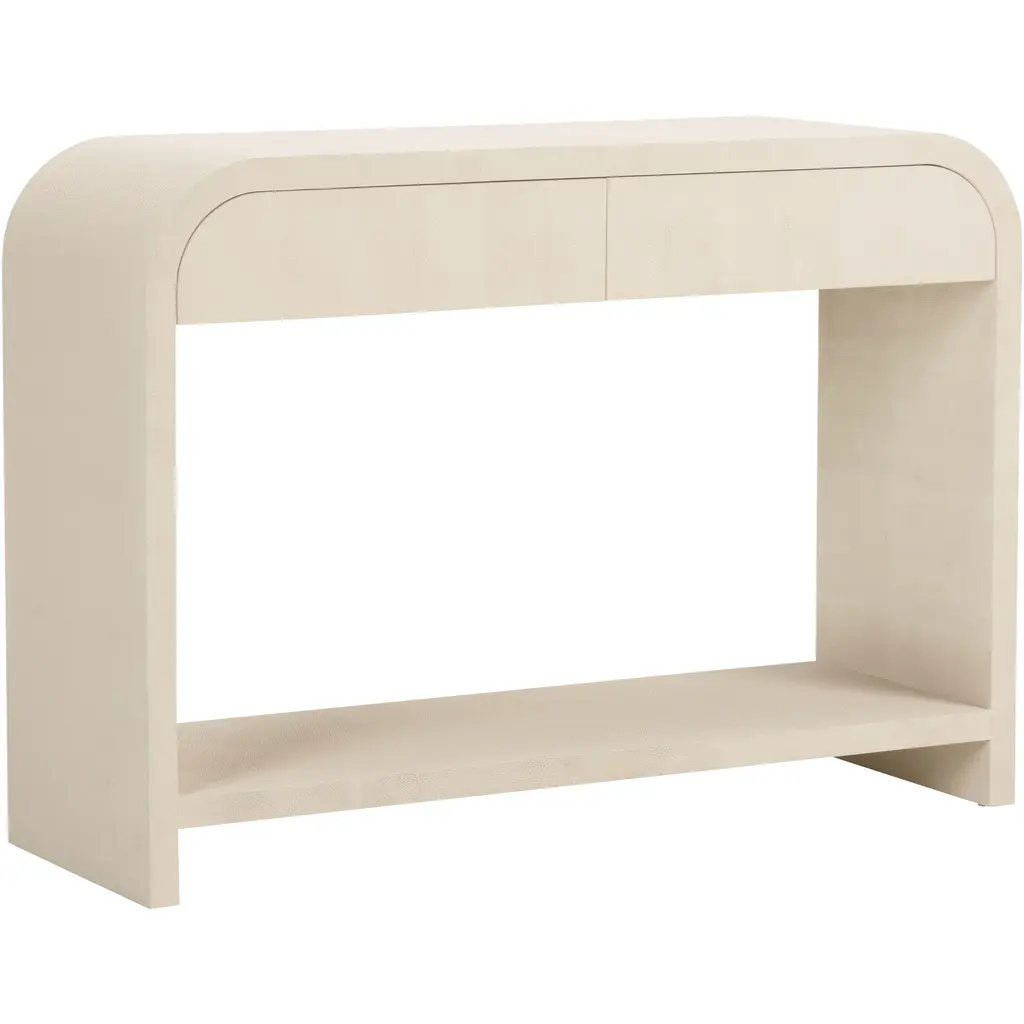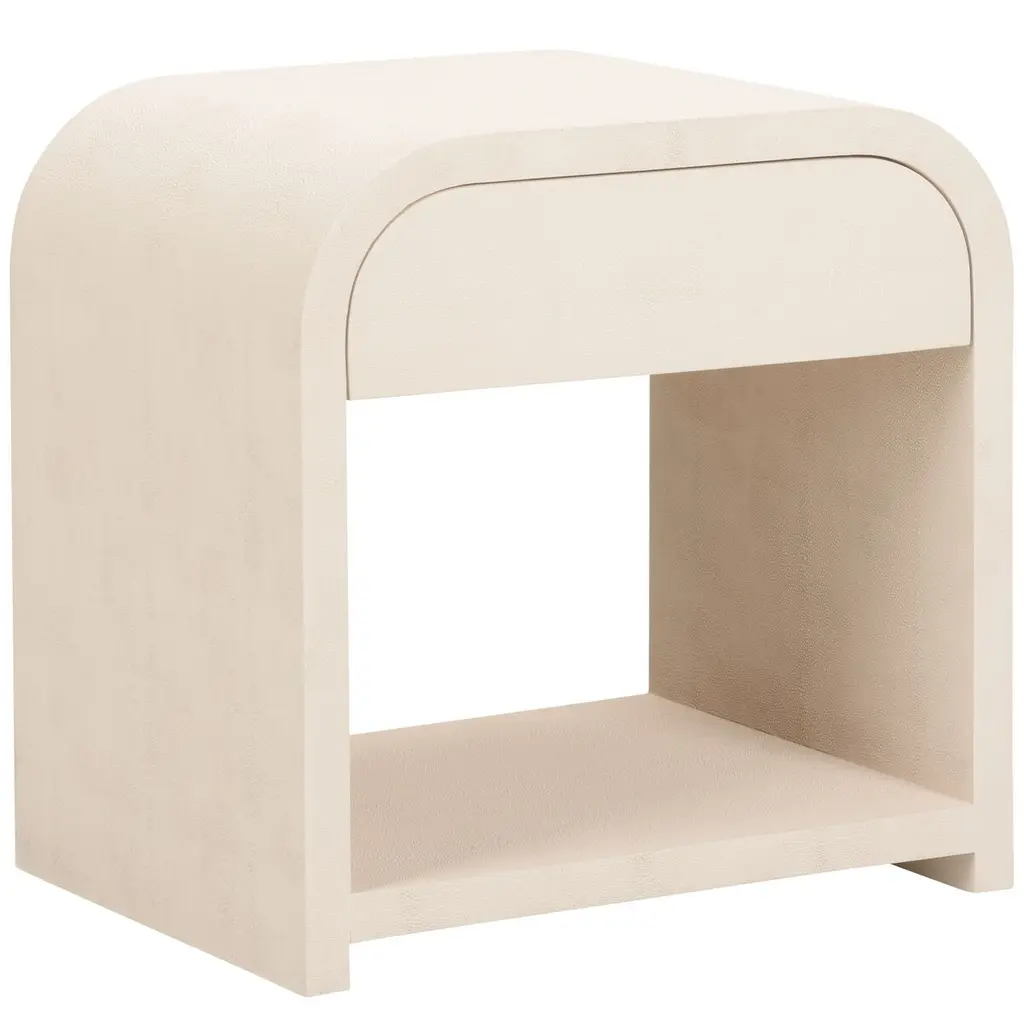 Whether used as a bedside companion, a stylish accent in the living room, or a functional piece in a cozy reading nook, our the Vail Side Table in cream faux shagreen adds a touch of sophistication to any room. Designed by Elizabeth Wicker.