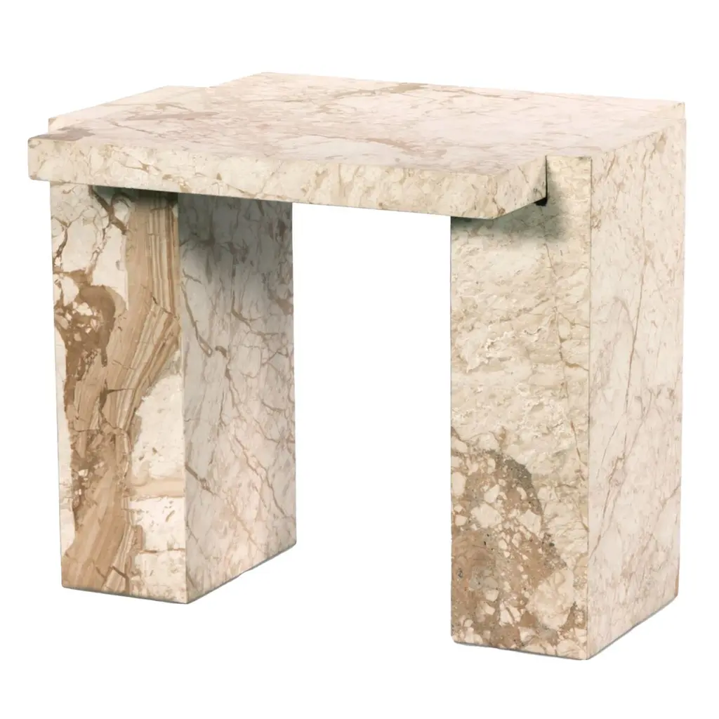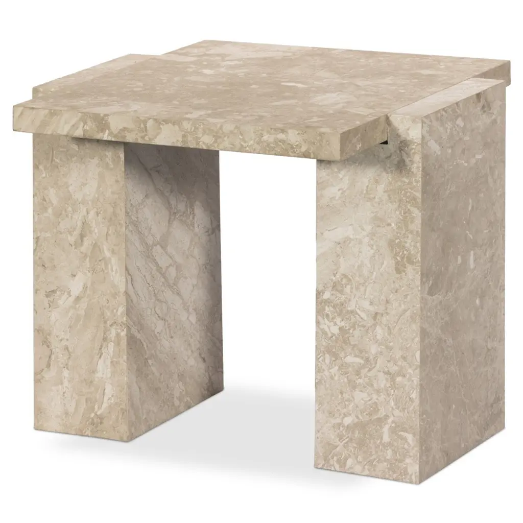 Valerie Modern Classic Beige Marble Rectangular End Table
