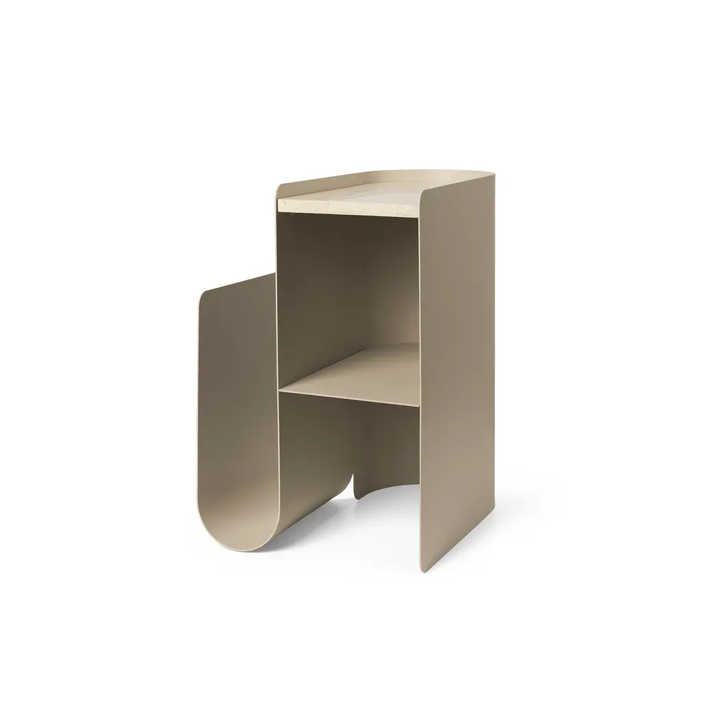Enhance your living area with the sophisticated and versatile Vault Side Table. Drawing inspiration from its gracefully curved, powder-coated steel base, the table’s design echoes the architectural elements of an arch. The vaulted side offers a convenient storage solution for your beloved books or magazines, while the handy shelf serves as a perfect display for decorative accents. Topped with a stunning, natural marble surface, the Vault Side Table exudes warmth and refined elegance, making it a striking addition to any space.