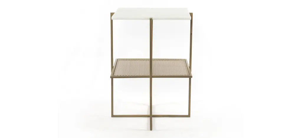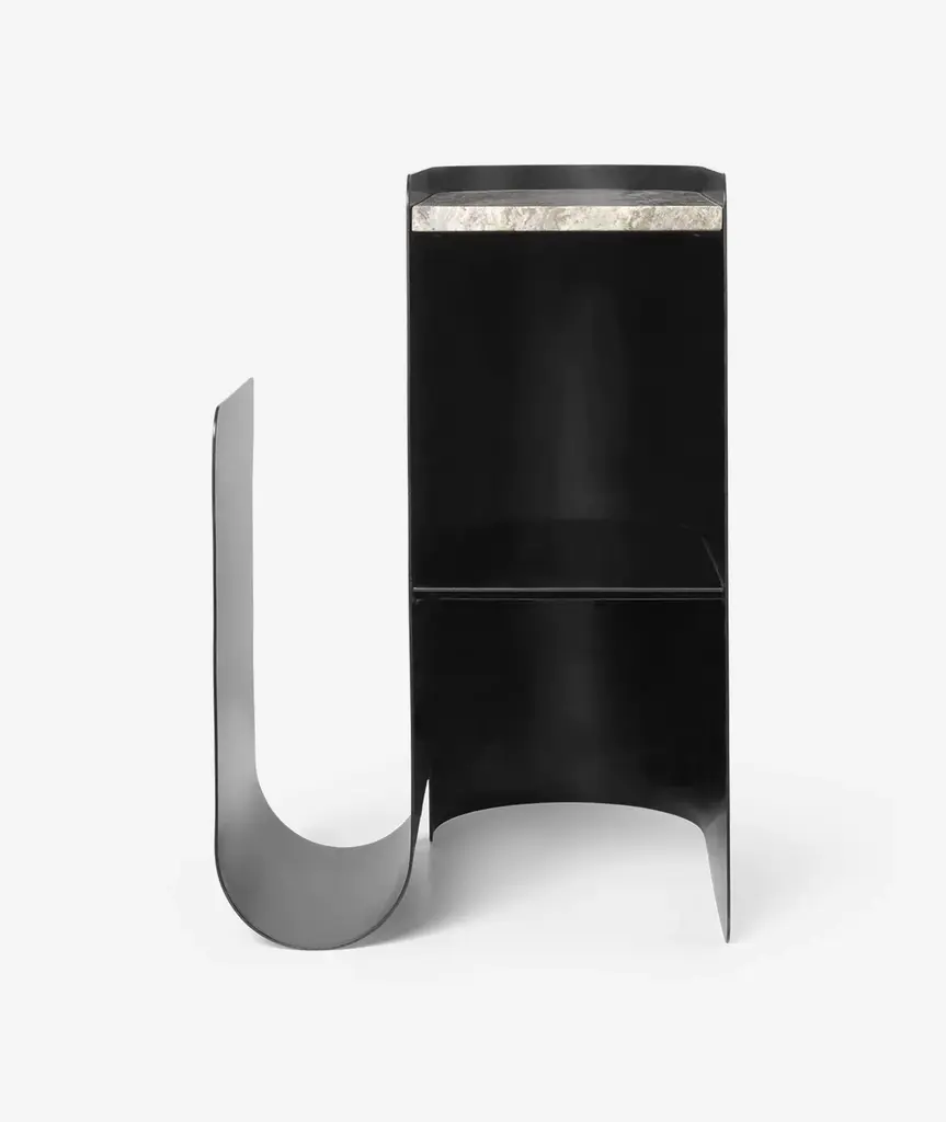 Elevate your space with the elegant and functional Vault Side Table. With a name that mirrors the arched shape of the powder-coated steel base, this table allows you to store your favorite books or magazines in the vaulted side, while the practical shelf is ideal for displaying decorative objects. The tabletop itself is made of beautiful, natural marble, providing the Vault Side Table with a warm, sophisticated expression.