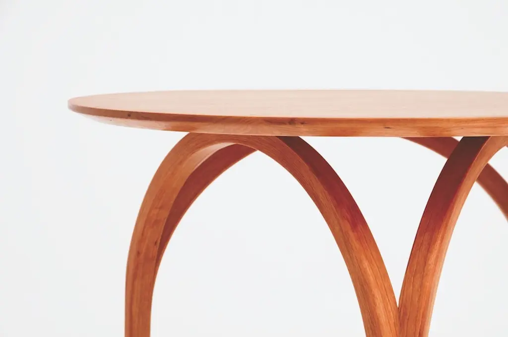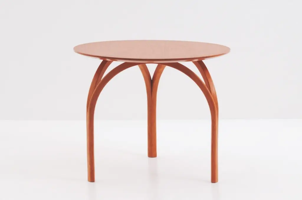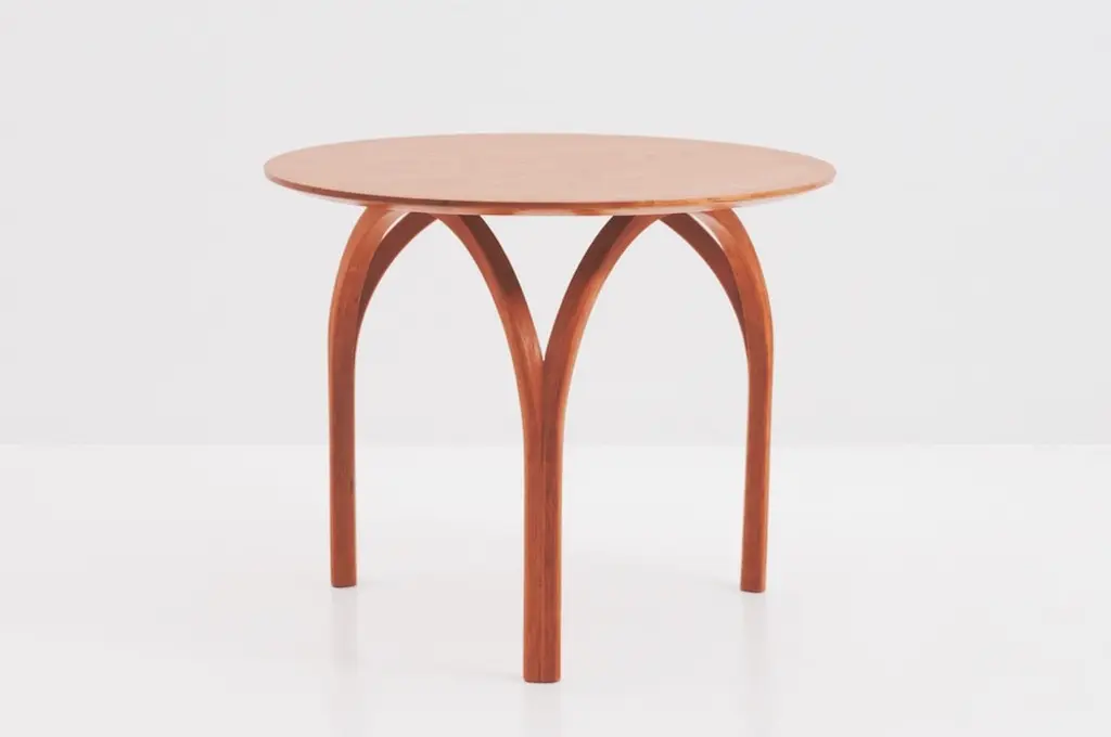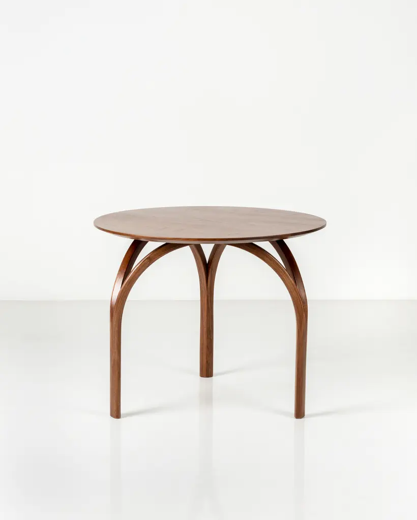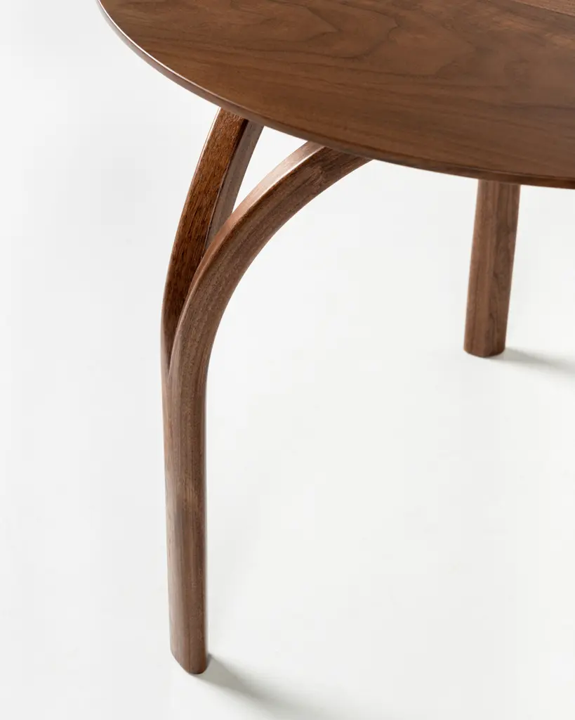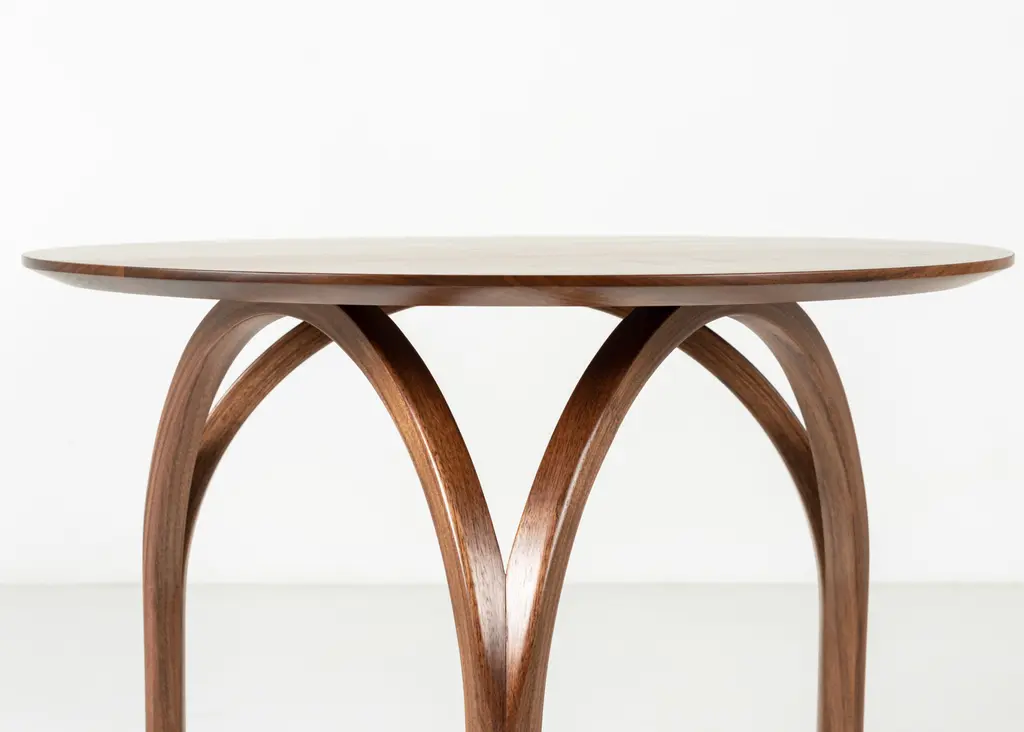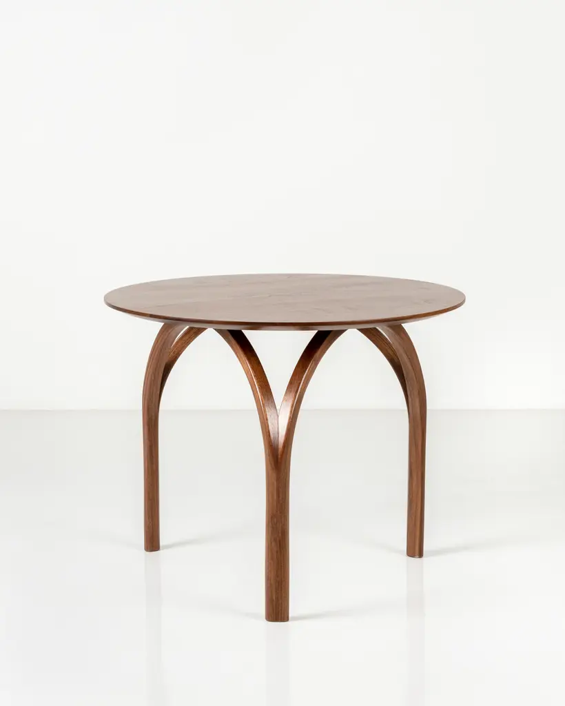 With curved legs that suggest a Gothic cathedral’s dome or the arch of its stained-glass windows, the Vault Table is spectacular in its simplicity. Made of solid, matched-grain hardwood, the table features a hand-finished circular tabletop that tapers gently as it eases from the top to its base.