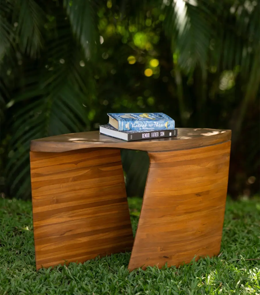 The Velero Side Table is a sustainable, handcrafted piece made from renewable hardwood. Its sleek, sailboat-inspired design combines modern elegance with functionality. Perfect as an accent or side table.