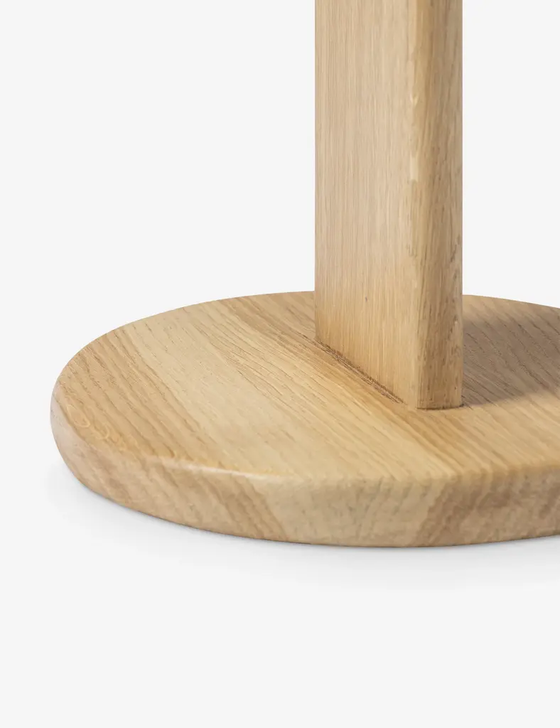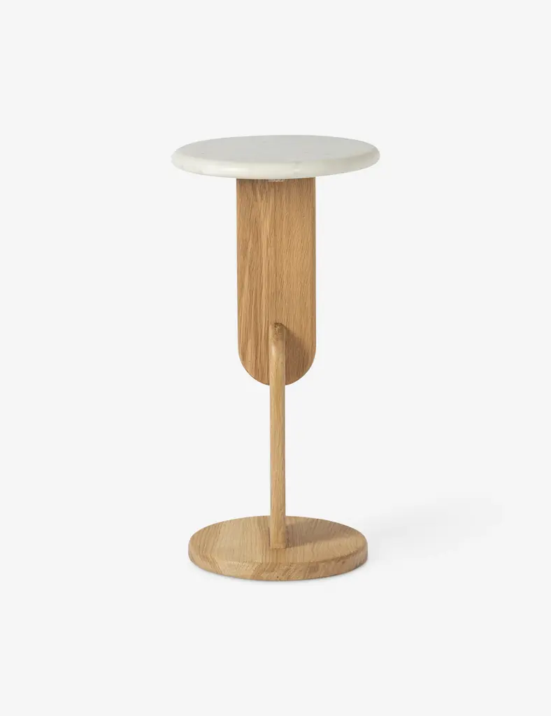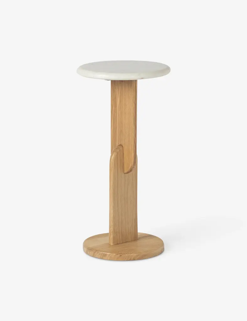 The Venetia side table brings an artful poise to timeless materials. Interlocking wood pieces create a sturdy yet slender base to support a round stone top. Style this small end table to perch drinks next to your favorite seat.
