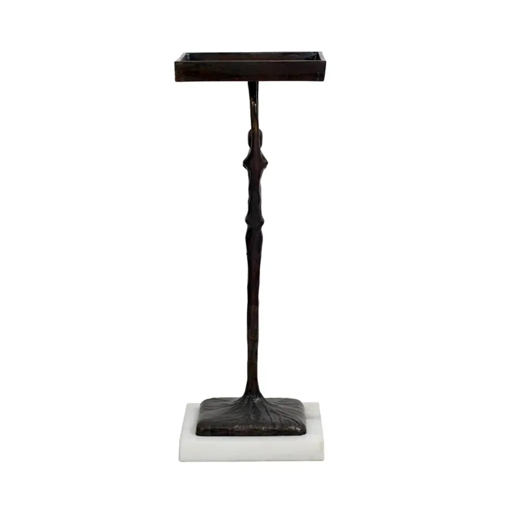 The table has both form and function with its unique sculptural body. Cast in striking black nickel-finished aluminum that’s textured and detailed perfectly showcasing its craftsmanship and sits at the perfect height for a chairside drink or toward the side of your room to display your favorite plant.