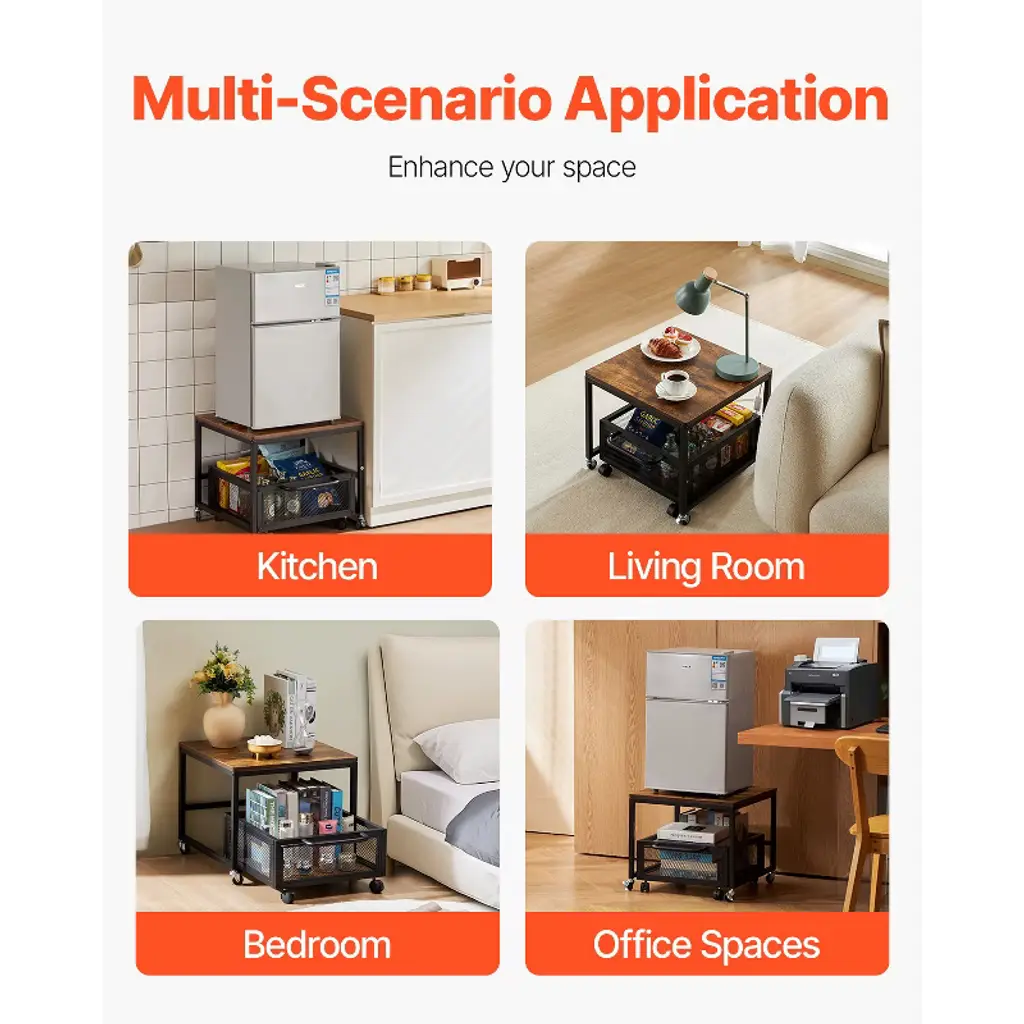 Vevor Mini Fridge Stand With Storage, 198 Lbs Mini Fridge Table With Movable Storage Cart & Swivel Wheels, Beverage Refrigerator Stand,light Brown