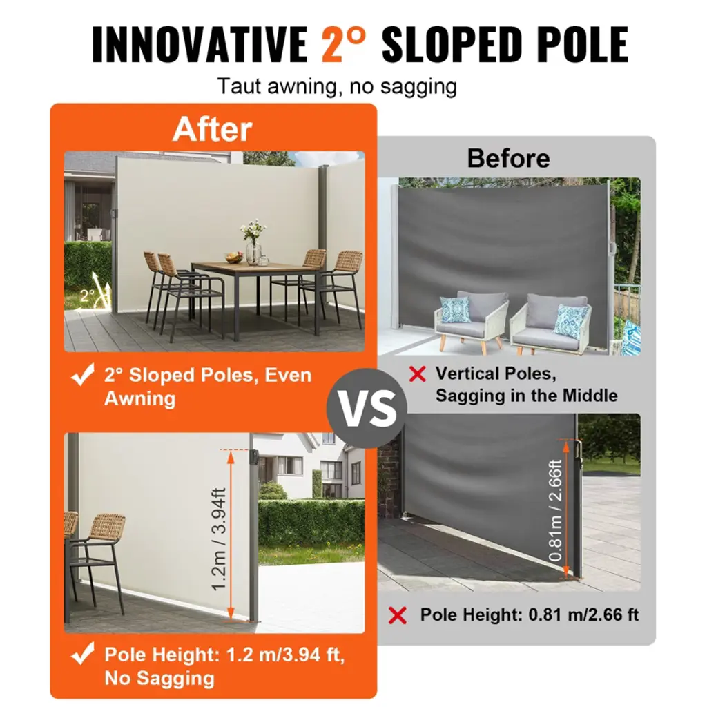 Vevor Retractable Side Awning, 79''x 236'' Outdoor Privacy Screen, 180g Polyester Water-proof Retractable Patio Screen