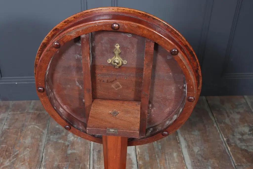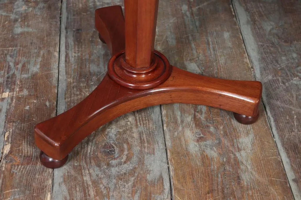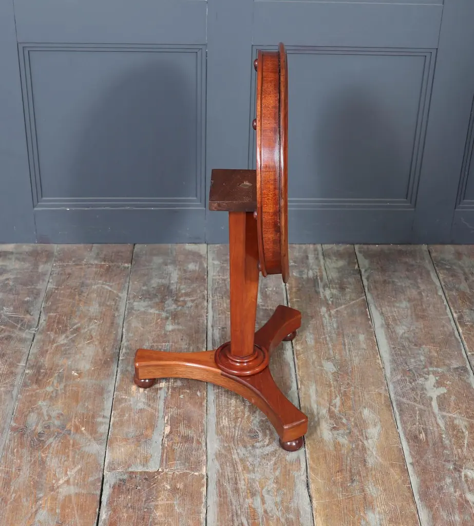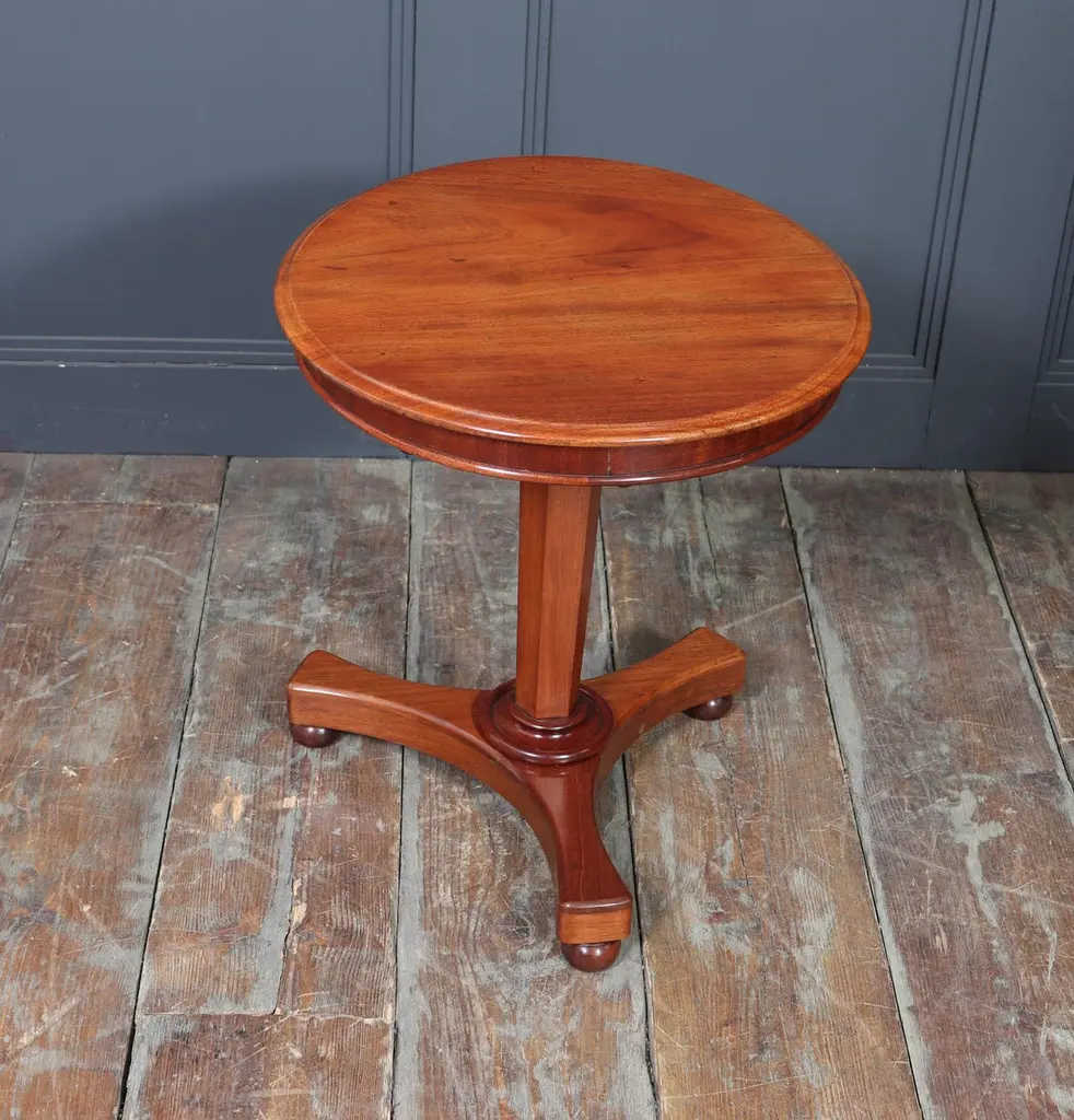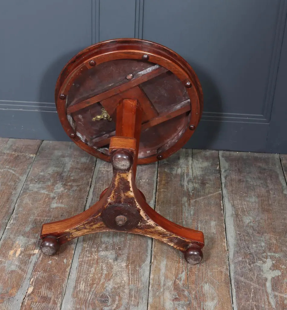 A charming late 19th-century Victorian tilt-top side table, crafted in rich, mellow mahogany. The circular top with gently moulded edge is supported on a finely turned column leading to a triple-legged base with ball feet. The original brass catch mechanism allows the top to tilt upright for space-saving convenience when not in use. Its compact form and timeless proportions make this table ideal as a lamp stand, occasional table, or refined accent piece.Provenance:English, circa 1880Acquired from a private collection in SussexRetains original brass tilt mechanismCondition:In excellent antique condition with only light surface wearRich original patina with deep colour and even toneStructurally sound and fully functional tilt mechanismDimensions:Height: 55 cmDiameter: 49 cm