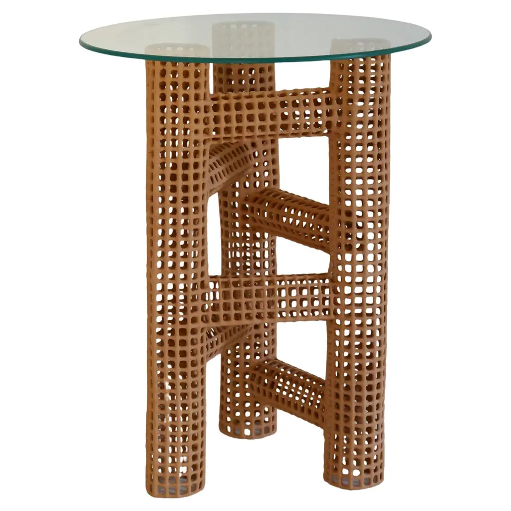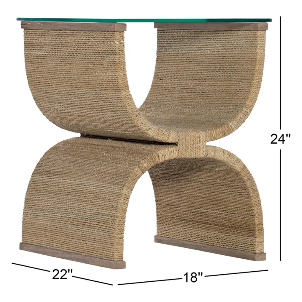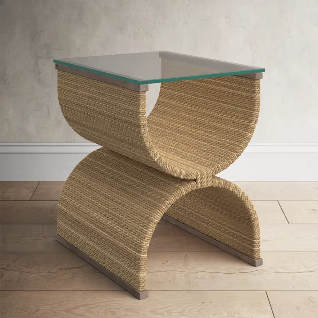 In stylish symmetry, the Vida Woven End Table, crafted in an organic woven rope with a tempered glass top, is a bohemian beauty that will add whimsy and practicality to any chairside. Come closer to Melange, and you will discover something unexpected, an eclectic blending of colors, textures, and materials in a vibrant collection of one-of-a-kind artistic pieces.