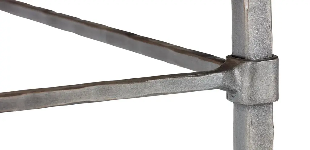 A gorgeous wood-top end table with the feel of a vintage find, Vida has a plank-effect tabletop crafted from either maple or oak and a hand-forged iron base finished in antiqued pewter tones. It adds an artisan touch to modern spaces and a handmade coziness to casual rooms.