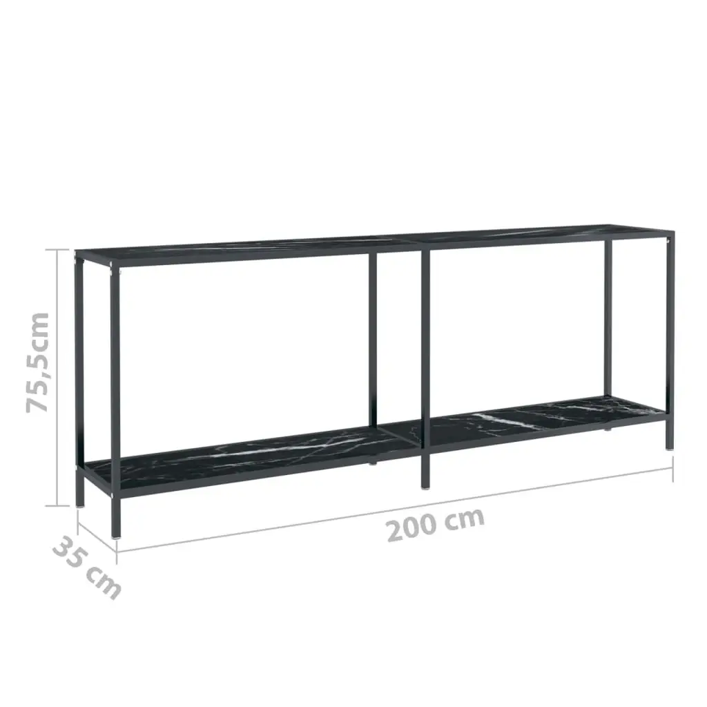 Vidaxl Console Table Black Tempered Glass, Powder-Coated Steel Large