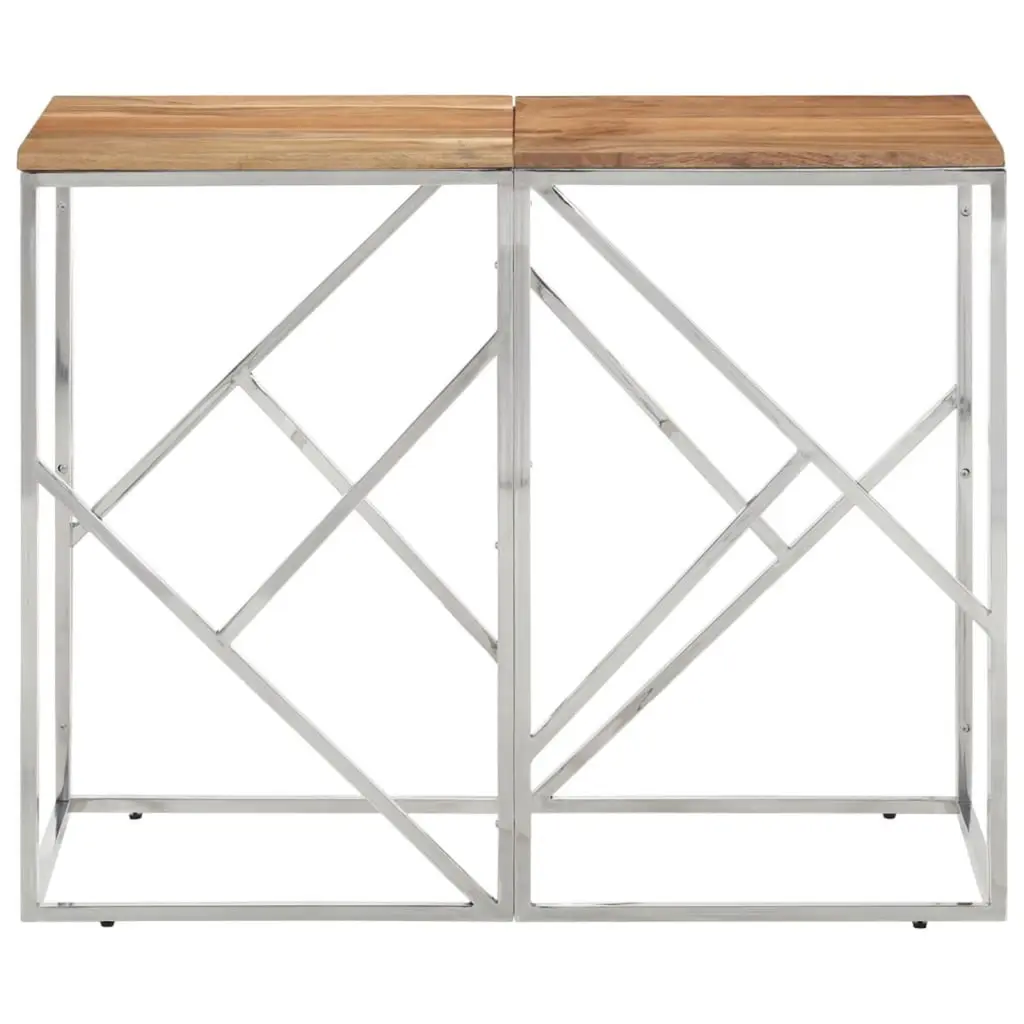 Vidaxl Console Table Silver Stainless Steel And Solid Acacia Wood Standard