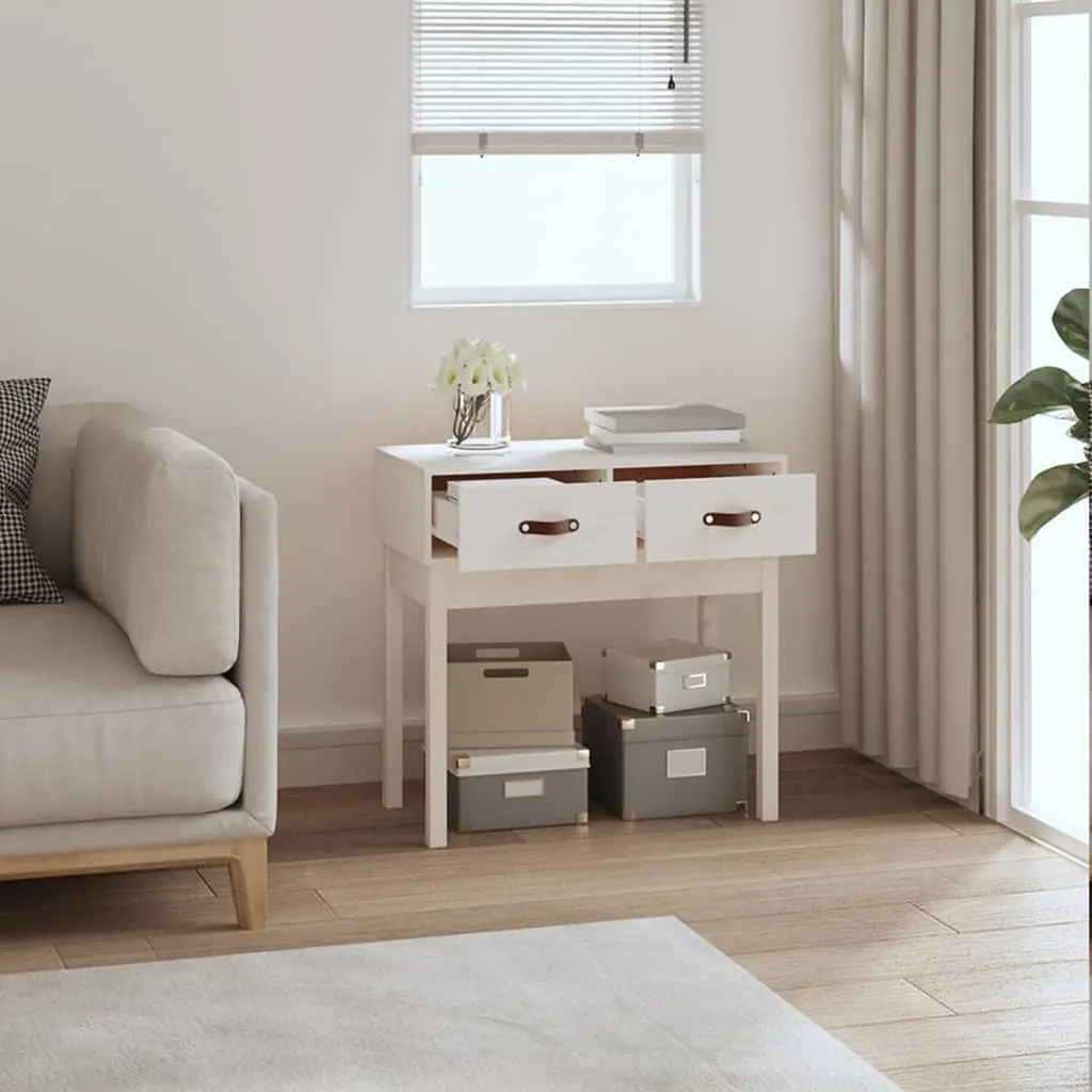 Vidaxl Console Table White Solid Pine Wood Standard Console Table