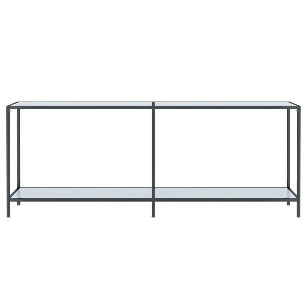 This console table is a modern piece with a lovely white finish, making it a great addition to any spot. It's perfect for showcasing your decorative items or as a handy entryway table. With its impressive dimensions of 78.7 in long, 13.8 in wide, and 29.7 in high, its sleek lines and shiny surfaces create a sophisticated vibe, fitting into both contemporary and classic decor. Stylish and Elegant: Its delicate glass shelf shows off items beautifully, adding sophistication to any room.Space-Saving: The slim design is perfect for entries, cutting down on clutter by giving a spot for keys, mail, or decorative plants.Quality Craftsmanship: Made from tempered glass and powder-coated steel, this console table is strong, ensuring it's durable while being light enough to move around.Functional Versatility: Not just a console table, it can also serve as a modern side table, display table, or a decorative accent in your entryway.Child-Friendly: Smooth edges keep things safe and prevent scrapes, making it suitable for homes with kids or pets.