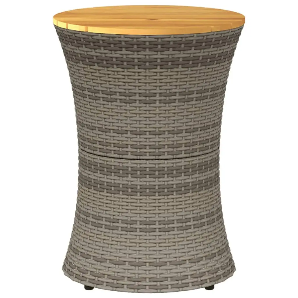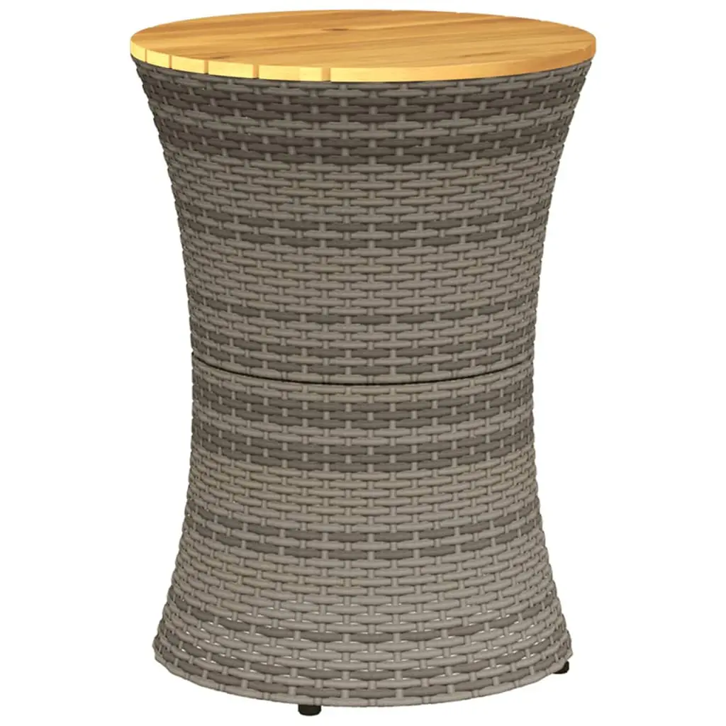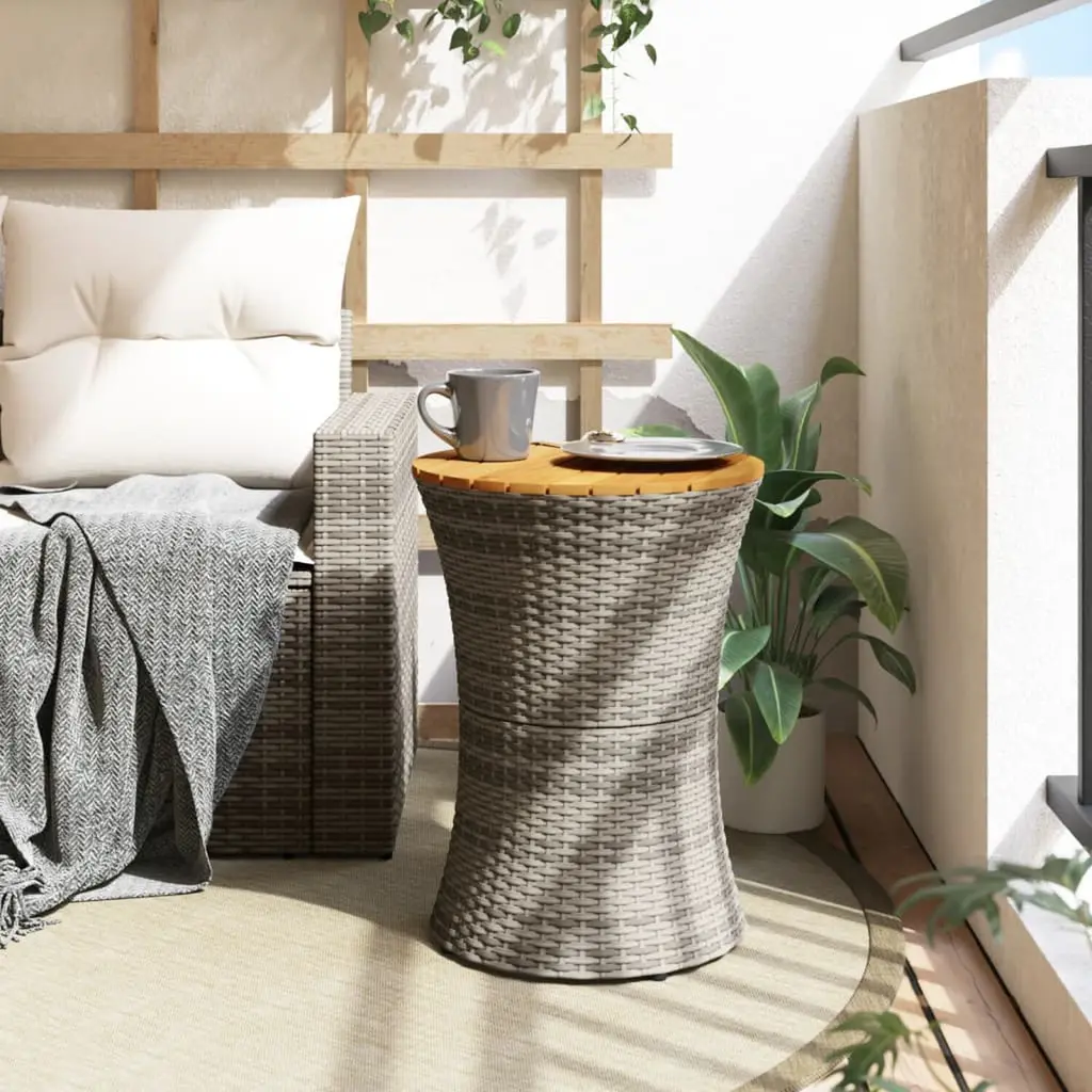 This garden side table is a stylish and practical choice for your indoor or outdoor area. Perfect for holding drinks or snacks at gatherings, its contemporary design and grey finish make it a great fit for any patio, balcony, or living space. It brings functional elegance wherever you use it. Durable Construction: Made with solid Acacia wood and tough poly rattan that holds up well against the weather, ensuring it lasts. Weather-Resistant Finish: Each piece is treated with an oiled finish, protecting it from moisture while looking good. Compact Size: At 16.5 in wide and deep, this table fits into small spaces but still gives you plenty of surface area. Multi-Purpose Use: Great for coffee outside or as a handy side table next to your lounge chair, it suits all sorts of activities. Easy to Clean: Maintenance is a breeze because you can just wipe it down with a damp cloth.