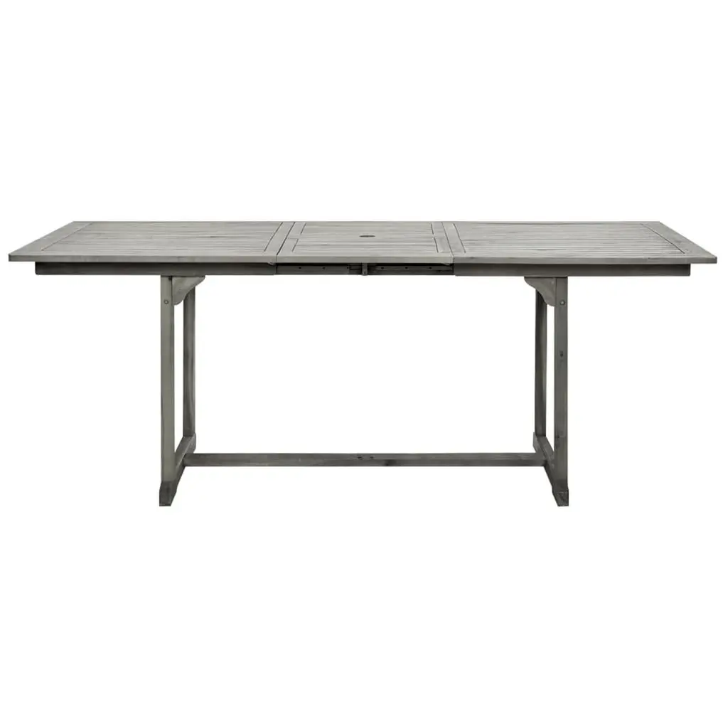 This extendable garden dining table is a stylish addition to your outdoor living space, offering rustic charm and functionality. Made from solid Acacia wood, it easily fits up to six people—perfect for family get-togethers or al fresco dining. Versatile Adjustable Design: The extendable feature enables the table to adjust from 59.1in to 78.7in, allowing it to adapt to your gathering size. Sturdy Construction: Made from solid Acacia wood, this table is built for durability and stability, so it’ll last. Rustic Aesthetic: The weathered finish gives it character and a lovely natural look, perfect for any outdoor setting. Indoor/Outdoor Versatility: Great for balconies, patios, or dining rooms, this table works effortlessly in both spaces. Generous Capacity: With room for six, it’s just right for hosting dinner parties or casual get-togethers.