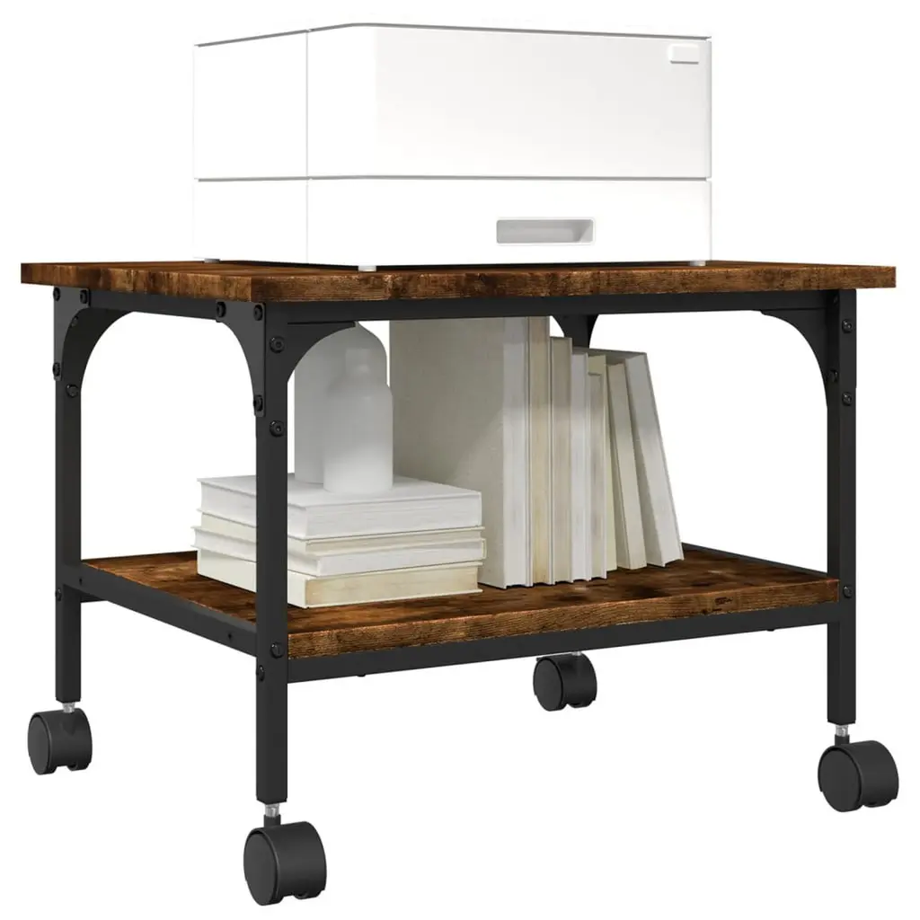 Vidaxl Printer Stand 2-Tier Smoked Oak 19.7"x15.7"x15" Engineered Wood