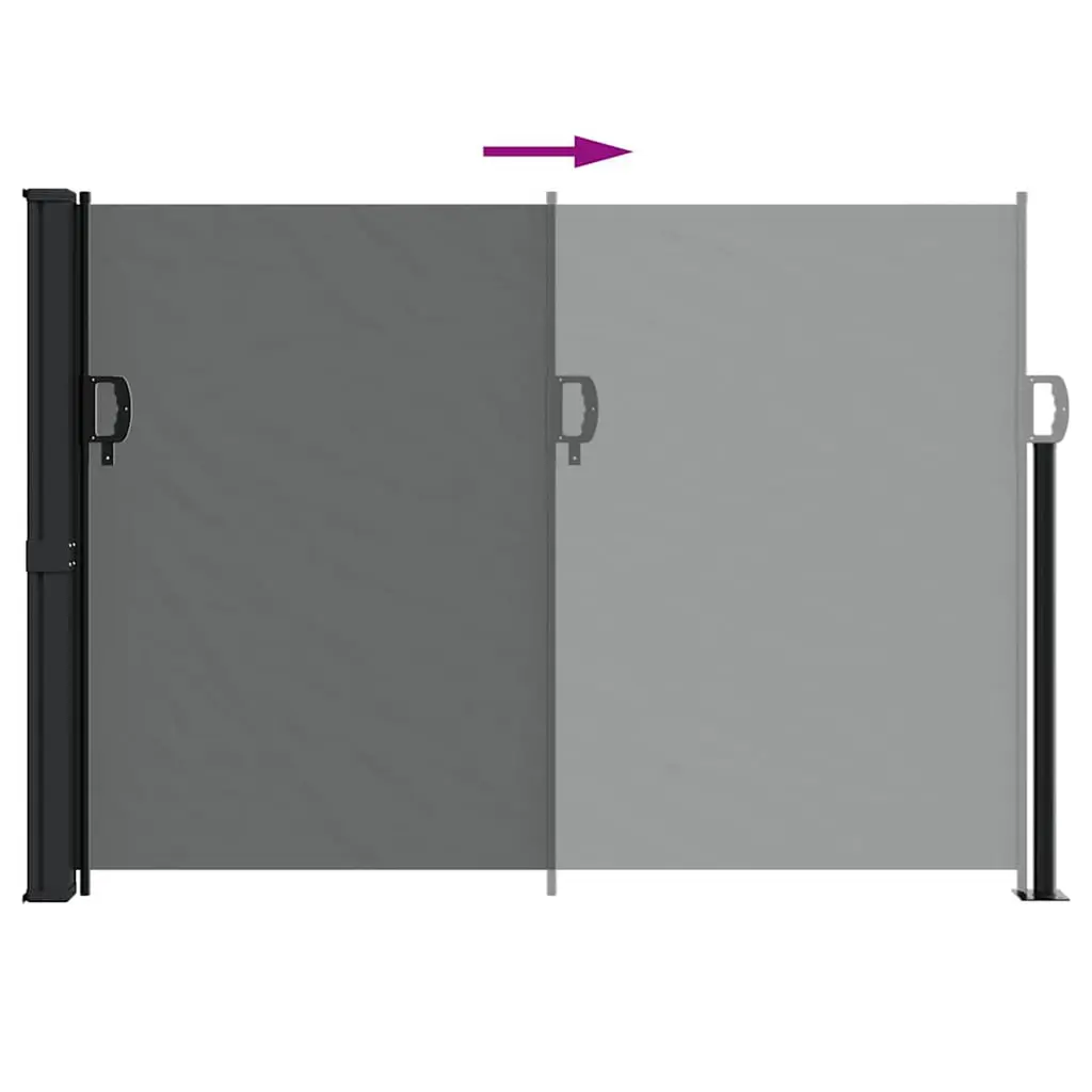 This retractable side awning is a smart and practical addition to any outdoor space. With its sleek grey polyester fabric and sturdy aluminum frame, it not only looks good but also offers essential shade and privacy for balconies, terraces, and gardens. Adjustable Installation: Its retractable feature lets you choose how much sun or privacy you want whenever you like. You can enjoy the fresh air while still keeping comfy and private.Durable Materials: Made from high-quality waterproof polyester with a PU coating, this awning stands up to bad weather, ensuring it lasts for a long time in all kinds of climates.Sleek Aesthetic: Its matte finish gives it a modern look, making it more than just practical—it's a stylish addition to your garden or patio's vibe.Easy Assembly: Comes with all the mounting bits and clear instructions, so setting it up is a piece of cake whether you're a pro or a DIY newbie.Spacious Coverage: At 55.1 x 196.9 in, it delivers loads of shade and privacy, perfect for larger spaces or outdoor hangouts.