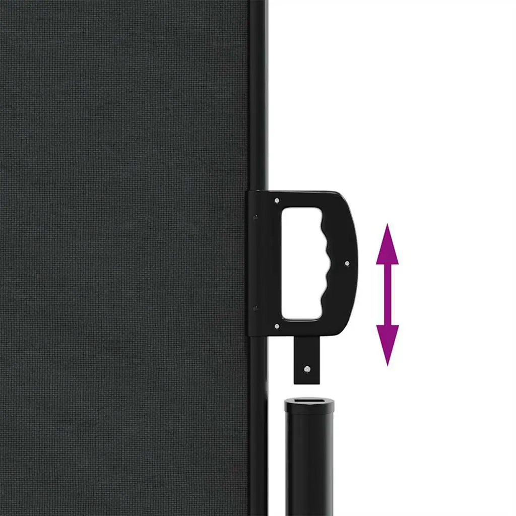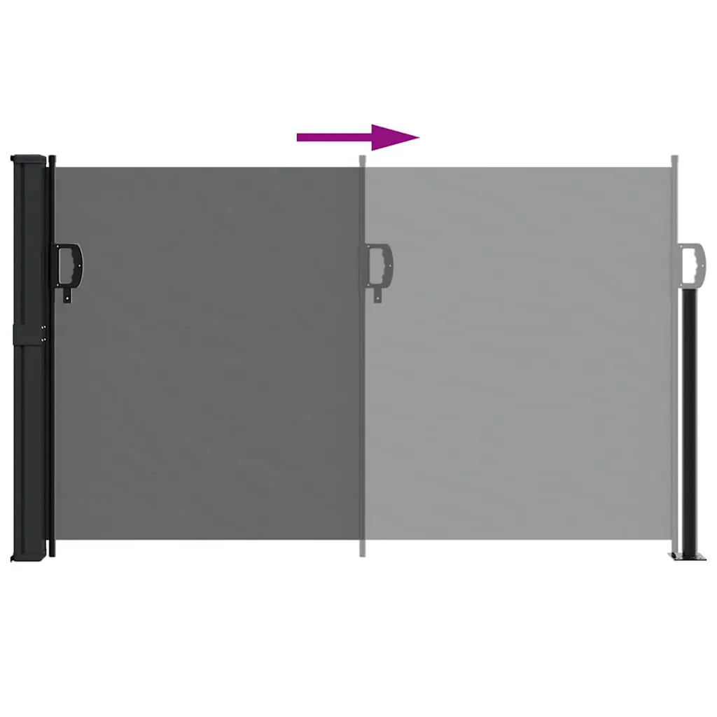 This retractable side awning is a smart way to boost privacy in your outdoor spaces. Its modern design fits in well with gardens, terraces, and balconies, giving a classy touch while providing shade from the sun and keeping prying eyes away. Adjustable Functionality: This awning can be easily extended or retracted, letting you customize your shade options as the sun moves and weather changes. Create an inviting outdoor vibe that suits you.Durable Construction: Made with high-quality, UV-resistant polyester fabric, this awning is built to last and handle the elements. No fading in the sun, it keeps looking good.Modern Aesthetic: With a matte black finish, the retractable awning looks smart and contemporary, fitting into any outdoor setting. Its clean lines and minimalistic style add to your garden or terrace's vibe.Easy Installation: The wall-mounted design makes it simple to attach securely. With the included mounting accessories, you can get it set up quickly and enjoy your outdoor space sooner.Multi-functional Usage: Great for use in backyards, terraces, or patios. This awning not only provides shade but also adds privacy when you're entertaining guests or just enjoying some time outdoors.