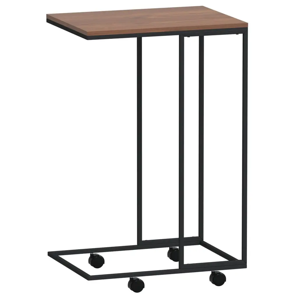 Vidaxl Side Table Black And Brown Engineered Wood, Iron Compact Portable