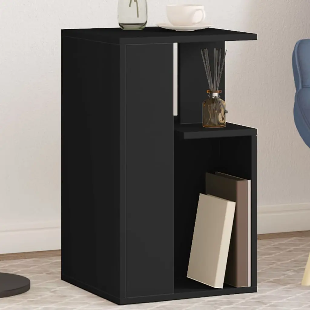 This modern side table adds a touch of style to any room while offering handy storage. It's 13.8 in wide and 13.8 in long, standing 23.6 in tall, making it a chic addition to living rooms, hallways, or offices. Ample Storage: The side table has spacious compartments for all your essentials like books and remote controls, keeping everything organized and tidy.Contemporary Design: Its clean lines and matte black finish elevate any room, a smart choice that effortlessly fits with modern decor.Durable Material: Made from high-quality engineered wood, this side table handles daily use and moisture like a champ, ensuring it lasts.Versatile Use: This side table isn't just for living rooms; it works perfectly in hallways or offices, providing utility wherever you place it.Space-Saving Design: Compact at 13.8 in by 13.8 in, this table gives you extra surface area for drinks, lamps, or decor without taking up too much space.