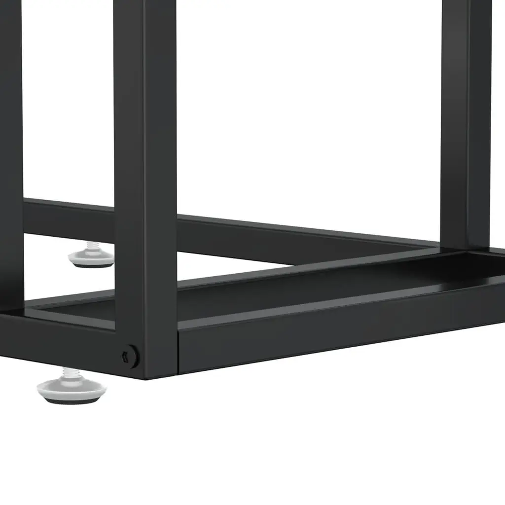 This modern computer side table brings sleek style and versatility, making it a great addition to any home or office space. With a smooth tempered glass top and stable powder-coated iron legs, it effortlessly fits with various interior looks while offering practical use. Sturdy Construction: The iron frame gives top-notch stability for daily use, so you can put your things down without a worry.Elegant Glass Surface: The tempered glass top adds a touch of class and resists heat and scratches, keeping it looking good over time.Versatile Usage: Great for a computer workstation, living room, or coffee table; this piece adapts well to any spot, boosting its usefulness.Compact Dimensions: At 19.7 in long and 13.8 in wide, it fits easily in smaller areas while still offering space for your essentials.Easy Maintenance: The smooth surface is a cinch to clean; just wipe it down with a damp cloth to keep it looking pristine.