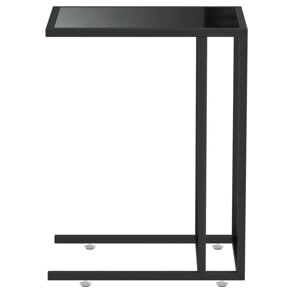 Vidaxl Side Table Black Tempered Glass, Powder-Coated Iron Medium Simple