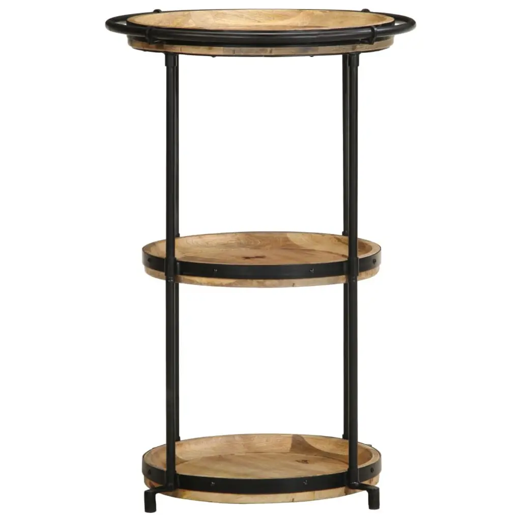 This stylish side table merges industrial design with functional elegance, making it a perfect addition to any living room, bedroom, or hallway. With its robust construction and aesthetic appeal, it serves as both a decorative and practical piece that can enhance your space's visual vibe. Ample Storage: Designed with three tiered shelves, this table provides generous space for storage and display, allowing you to organize essentials or showcase lovely decor items. Durable Construction: Crafted from solid mango wood and reinforced with a powder-coated metal frame, this side table is built to last while maintaining a polished finish that adds a touch of sophistication. Industrial Aesthetic: The sturdy factory-inspired design creates a modern look that is perfect for urban living spaces. The combination of brown wood and black metal provides a striking contrast that enhances any room. Versatile Application: Perfect for use as a plant stand, tea stand, or as an accent table by your sofa or bedside, this table adapts beautifully to any interior setting. Dimensions and Practicality: With a diameter of 21.7 inches and a height of 32.7 inches, its medium size makes it functional without overwhelming your space, perfect for small living areas.