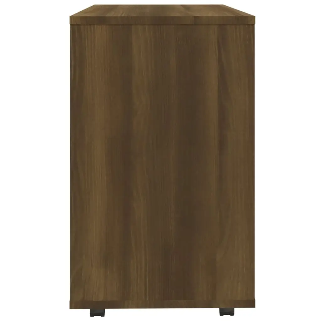 This side table, with its sturdy brown oak finish, combines function and style for your space. Just the right size to fit beside a sofa or bed, it brings warmth while providing practical storage with its two spacious tiers. It's a perfect pick for anyone looking to enhance their home decor. Stylish Design: The elegant brown oak finish creates a rich and warm vibe that complements various interior styles, from minimalist to rustic, fitting in perfectly.Versatile Functionality: With its generous size, you can use this side table for all sorts of things like serving coffee, holding books, or even as a lamp table, making it a fantastic addition to your living room, bedroom, or hallway.Easy Mobility: With its four wheels, this side table is super easy to move around, allowing you to rearrange your space for gatherings or daily activities without any hassle.Spacious Storage: Two tiers give you plenty of room for displaying decorative items, stashing daily essentials, or organizing books, making it a smart choice for tighter spaces.Durable Construction: Made from moisture-resistant engineered wood, this table is built to handle daily use while keeping its good looks, ensuring it’s a solid piece of furniture for years to come.