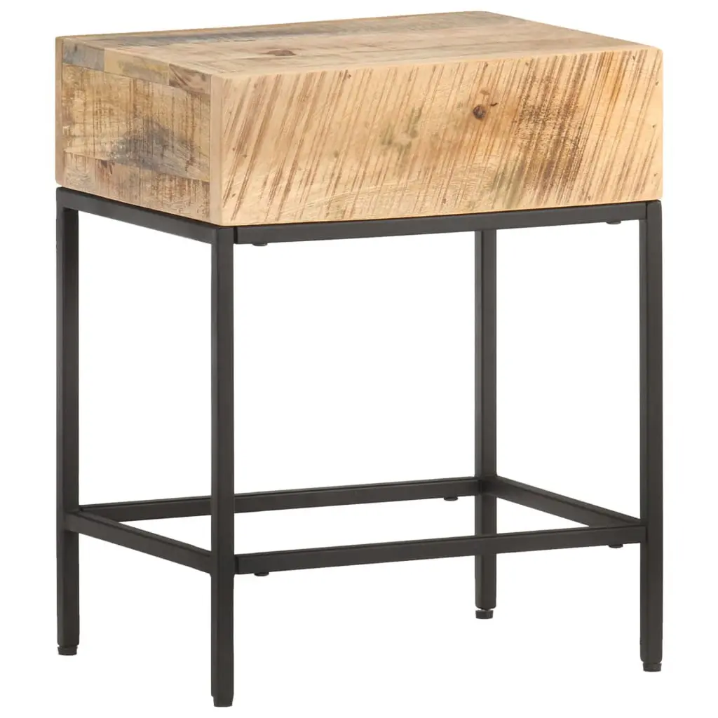This vintage rectangular side table combines function with style. Made from solid rough mango wood, it looks great in any living room, bedroom, or kitchen, making it a must-have for serving coffee or decoration. Its rich brown finish shows off natural wood patterns, adding rustic charm to your home's vibe. Handmade Craftsmanship: Each side table is lovingly crafted by hand, making them all a bit different. This uniqueness adds authenticity to your décor and showcases skilled workmanship. The focus on quality gives it personality, making it a great talking point in your home.Durable Materials: Made from solid mango wood and a strong powder-coated steel frame, this table is built to last. The metal legs provide solid support, designed for everyday use while keeping its classy look. This mix of materials means it can handle your busy life.Elegant Finish: The table is lacquered and polished for a beautiful, easy-to-maintain look. The finishing brings out the natural grain of the wood, adding a touch of luxury that fits both modern and vintage styles. It’s perfect for displaying decorative items or everyday bits and bobs.Functional Design: With its compact dimensions, this side table fits right into any space. Whether next to a couch or standing out in a cozy corner, it makes reaching for drinks or books easy. Its thoughtful design ensures it’s made for daily use while being a stylish touch to your decor.Versatile Usage: Ideal for coffee serving or holding lamps, this side table adapts easily to different areas in your home. Its vintage vibe suits a variety of décor styles, while its sturdy build means it'll fit right into modern spaces.