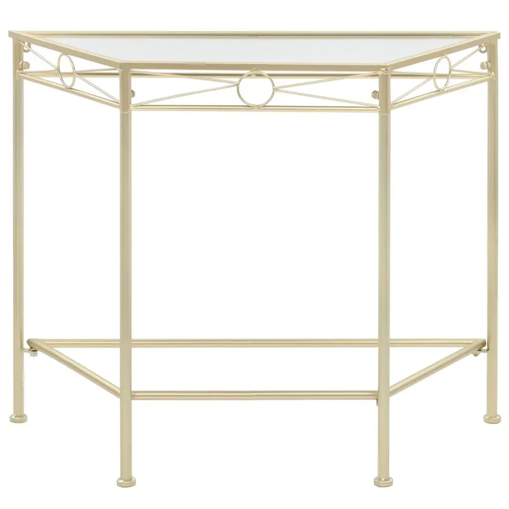 This Vintage Style Metal Side Table is a stunning piece that blends functionality with style, making it perfect for your home. Its shiny gold finish and antique vibes are sure to grab attention and lift the look of any living room, foyer, or hallway. Sturdy Wrought Iron Frame: Made from a strong wrought iron, this side table's built for stability and support. It's ready to handle daily use, making it a dependable pick for your home. Antique Finish: The lovely antique finish boosts the table's vintage charm and works well with lots of interior styles. This lovely touch creates a warm and welcoming vibe in your space. Chic Gold Color: With its stunning metallic gold hue, this side table really stands out. It's bound to bring a touch of elegance to any area, whether used as a display table or an accent piece. Functional and Decorative: This versatile side table can do a bit of everything, from showing off plants to holding decorative bits. It amps up functionality while looking fab in your home decor. Compact Dimensions: At 34.3 in long, 13.4 in wide, and 28.7 in tall, this table fits easily into tighter spots without skimping on style or function.