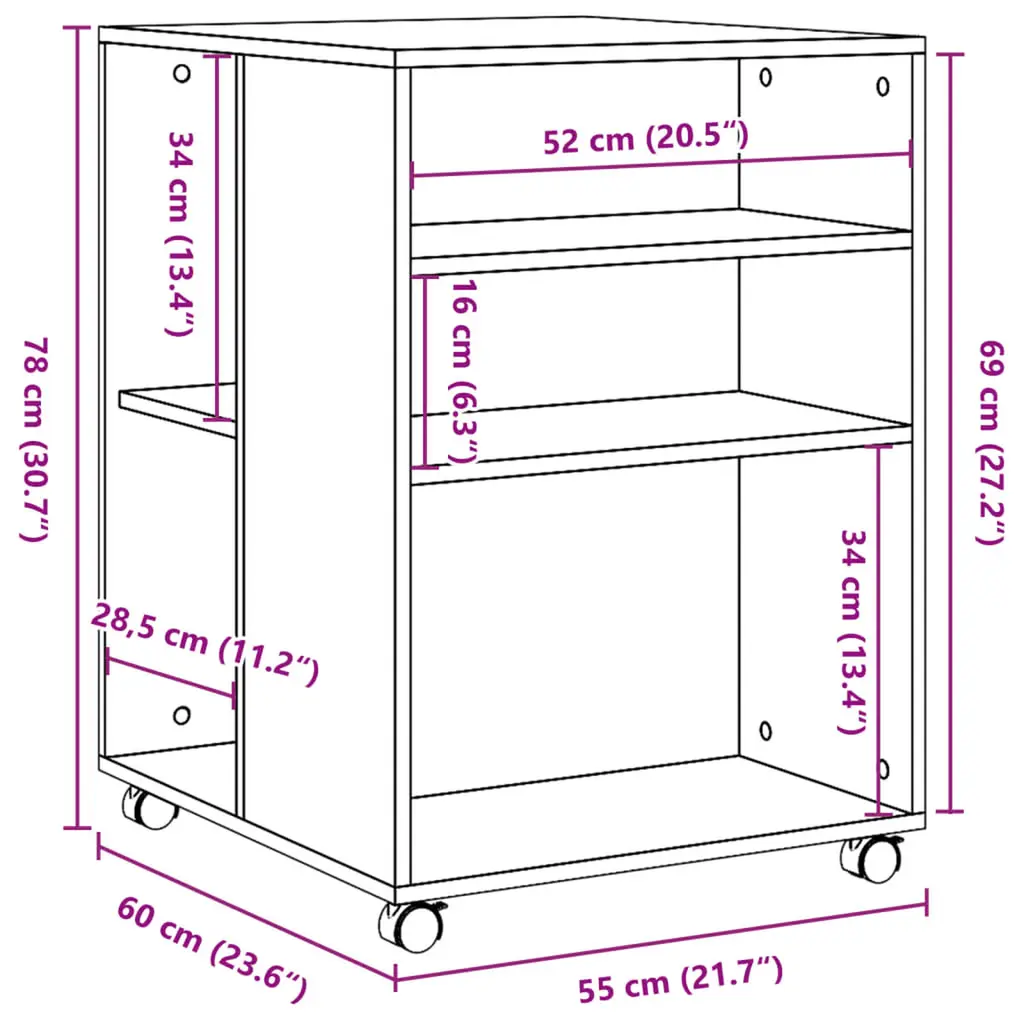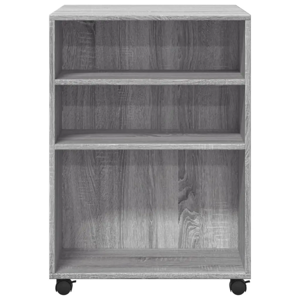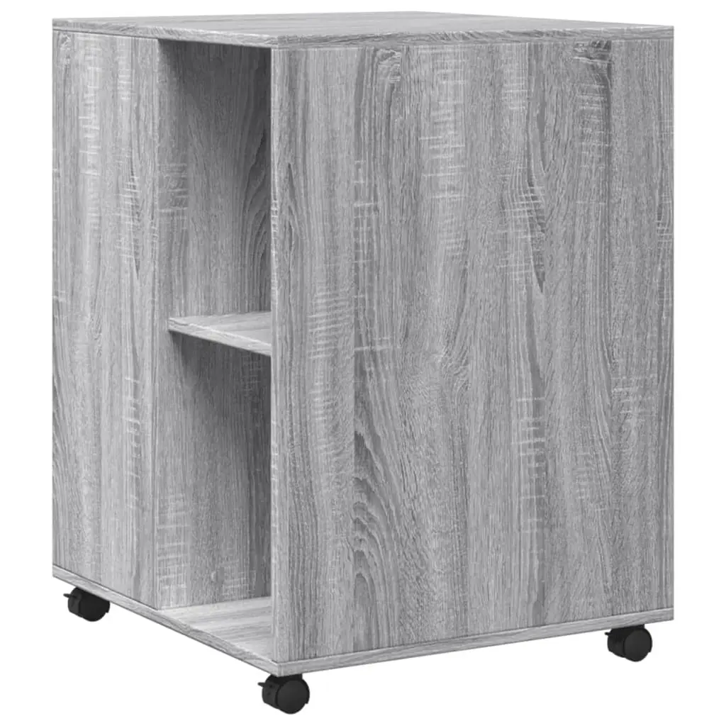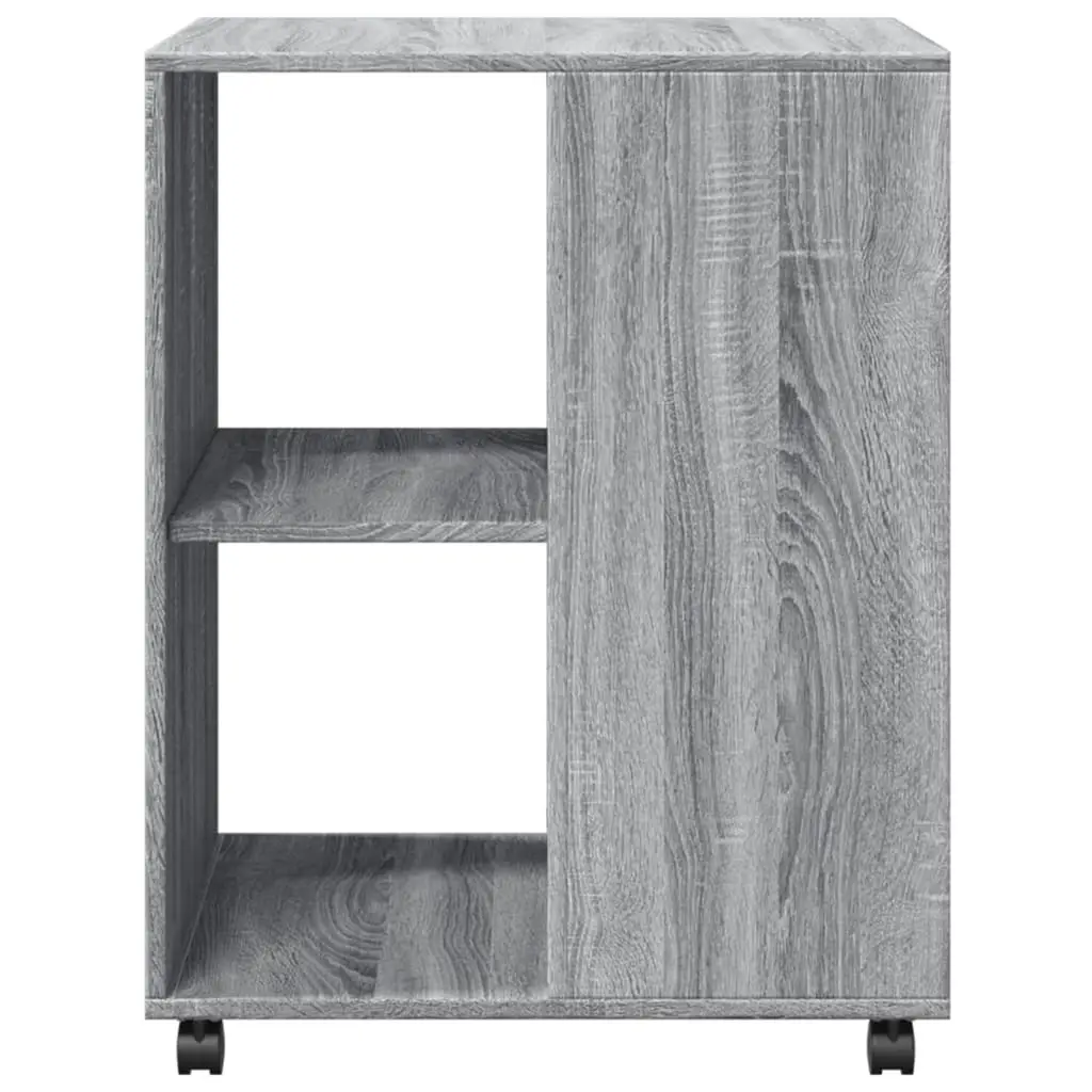 This rolling side table is all about modern style and practicality, making it a must-have for any living space. With its chic grey Sonoma finish, it provides a flexible surface for various uses, whether as a nightstand, accent table, or extra storage in your living room or bedroom, blending seamlessly with your existing decor. Ample Storage: Two free-standing shelves made from quality engineered wood ensure you have enough space to keep your essentials nearby while keeping everything tidy.Lockable Wheels: Four swivel wheels let you easily move your side table, plus you can lock it in place for stability. You can shift it from room to room without worrying about it rolling away.Stylish and Functional: The modern aesthetic is visually appealing and functional, offering a clean and minimalist look that suits any contemporary home.Durable Material: Built from moisture-resistant engineered wood, this table is made to withstand everyday use while looking good over time. Its sturdy design means it can hold up to 110.2 lbs of weight.Versatile Use: Perfect for use in the living room, bedroom, or hallway, it doubles as a handy accent piece. Its adaptable design means it can handle a variety of needs and occasions.