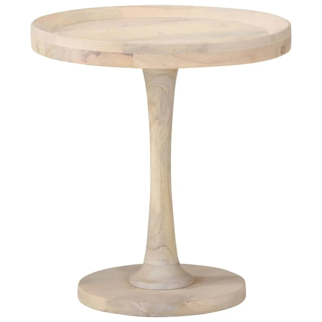 This vintage round side table, made from solid mango wood, effortlessly blends style with function. It's a fantastic addition to both living rooms and bedrooms. With its charming look, featuring a distinctive grain and natural finish, it creates a welcoming vibe, perfect for cozy nights in. Handmade Craftsmanship: Each table showcases unique features due to the detailed handmade process, ensuring that no two pieces are the same. Solid mango wood construction adds natural elegance, making it a striking focal point in any room.Elegant Design: With vintage charm, this round side table fits a range of decor styles, enhancing your living space’s aesthetic. The bleached finish highlights the wood’s character and allows for easy integration into any interior design.Versatile Use: Its size makes it suitable for all sorts of tasks; whether you need a spot for coffee or want to show off your favorite plants, this table ticks all the boxes. It works brilliantly as an accent piece that suits modern, rustic, and vintage styles alike.Durable Build: Built to last, the sturdy mango wood can handle everyday wear and tear, ensuring it maintains charm and integrity through years of use.Size and Specifications: Measuring 19.7 inches wide and deep, and 21.7 inches tall, this medium-sized table is perfect beside a sofa or as an accent. It's suited for anyone wanting functionality without sacrificing style.