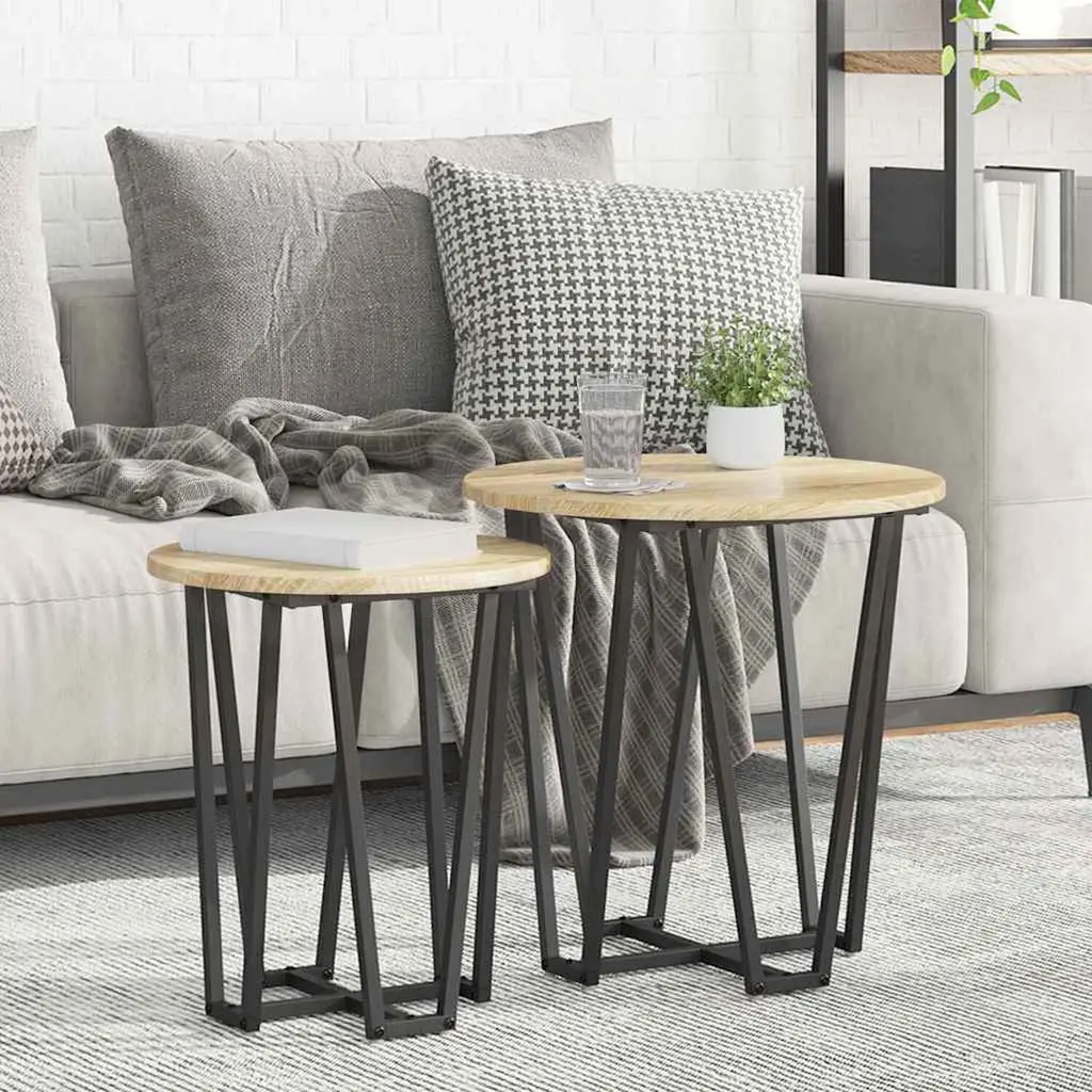 Vidaxl Side Table Set 2 Pcs Sonoma Oak And Black 19.7" X 19.7" X 19.9