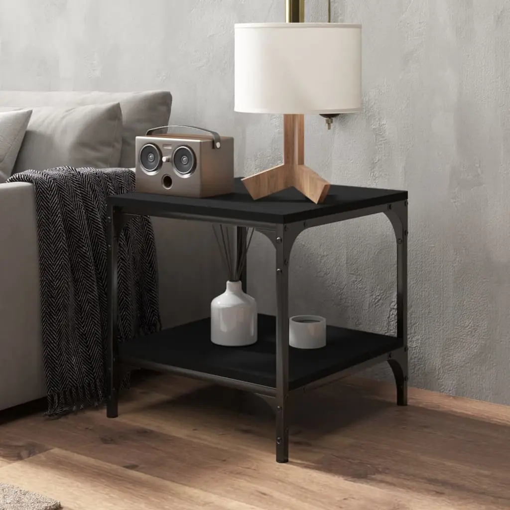 This set of side tables showcases an industrial design that combines engineered wood with a robust steel frame, creating a sleek and modern piece for today's living spaces. Ideal for entryways or next to your sofa, these tables enhance functionality and style with their minimalist aesthetic and smooth finish, providing a chic solution for everyday use in any room, whether it’s the living room, bedroom, or hallway. Each table boasts a matte black finish that blends effortlessly into modern decor.Made with quality engineered wood and a powder-coated steel frame for durability and stability.Compact design makes them ideal for smaller spaces while still offering plenty of surface area for drinks and decor.Features levelers to stay stable on uneven flooring, making them great for any indoor setting.Perfect for coffee serving or as bedside tables, they work well in both living and sleeping areas.