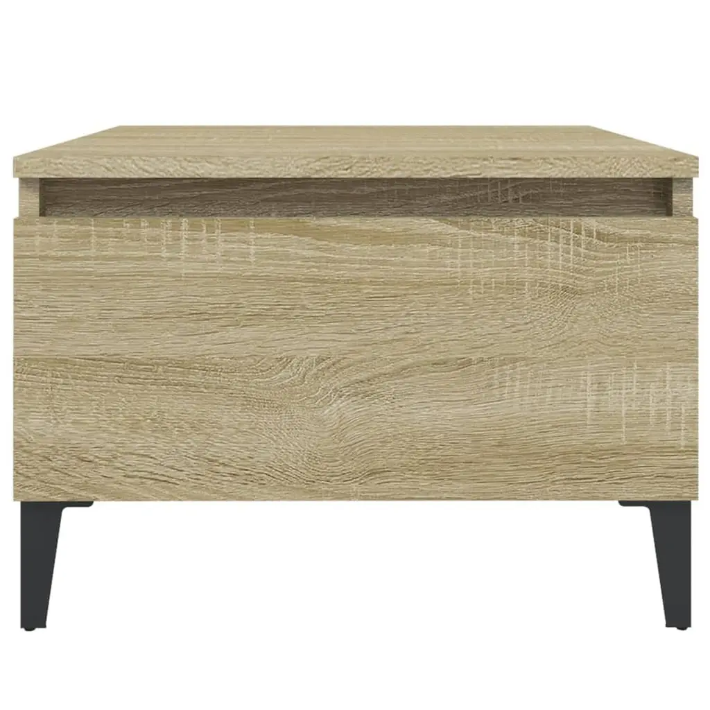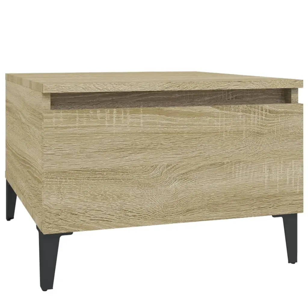 This Sonoma oak side table set is a lovely addition to any living space, fitting in perfectly with contemporary and industrial decor. The sturdy wooden structure and matte finish give it a warm and inviting vibe that spruces up your home, making it both practical and visually stunning. Loads of Storage: The side tables give you plenty of room and a drawer for remote controls and knick-knacks, keeping your living space organized.Tough Build: Made from high-quality engineered wood with sturdy metal legs, these tables are solid enough for daily use while looking sharp.Handy Placement: Perfect for different settings, from living rooms to hallways, these tables fit nicely into various furniture setups.Smart Look: The smooth matte finish enhances the Sonoma oak color, creating a stylish look that blends in with a range of interiors while being easy to clean.Compact Size: Measuring 19.7 in long and 18.1 in wide with a height of 13.8 in, they're great for smaller spaces, ideal for compact homes or cozy living rooms.