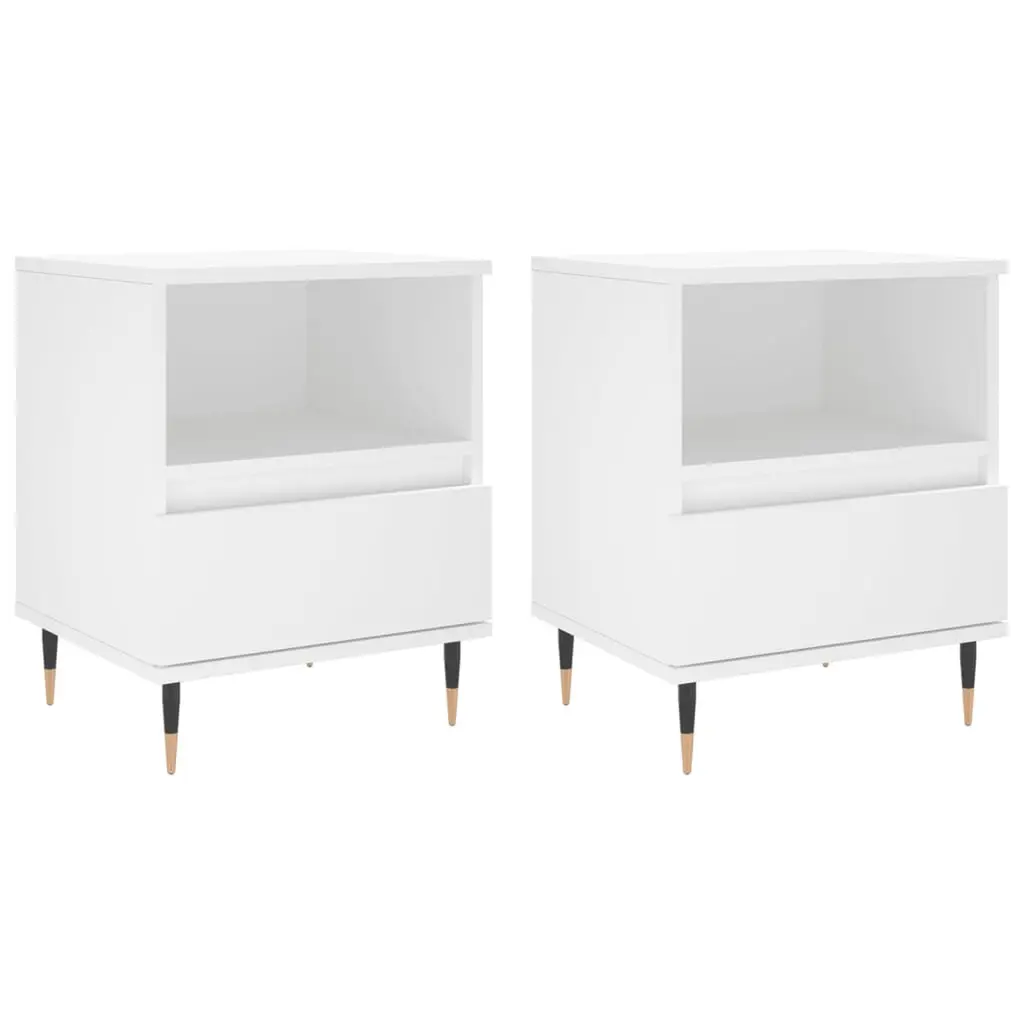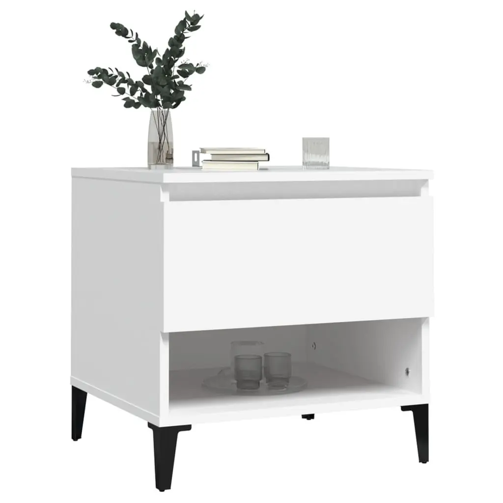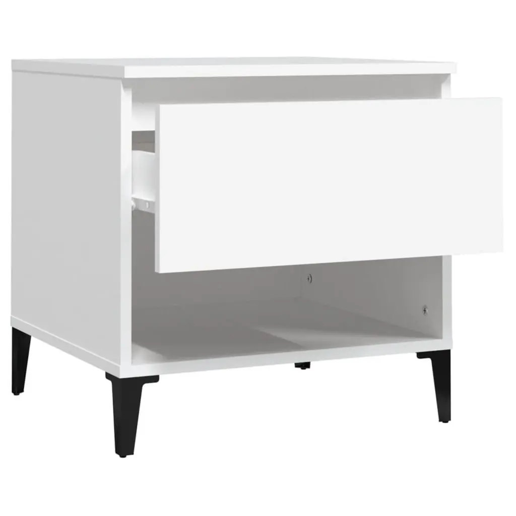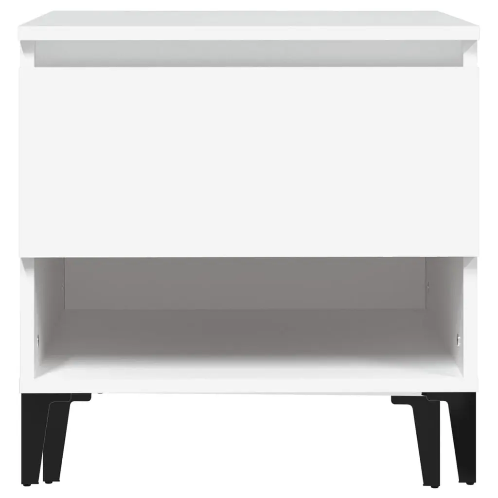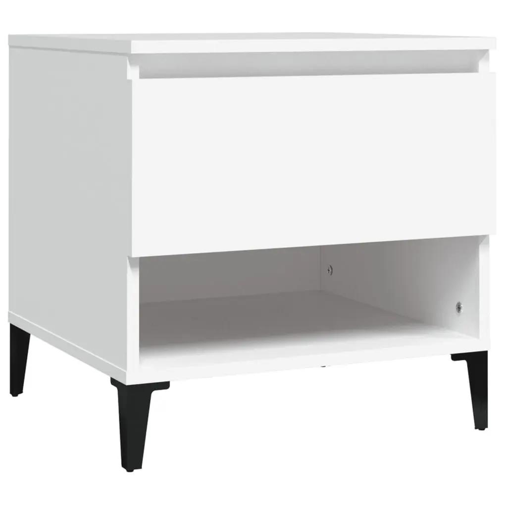 This set of industrial side tables combines functionality and style, perfect for modern living spaces. Made from engineered wood with a sleek white matte finish, these tables serve as both accents and practical furniture, fitting into various decors. Ample Storage: These side tables have two roomy compartments, perfect for keeping your bits and bobs tidy and close at hand. Their drawer lets you organize easily while keeping a neat look. Ideal for stashing magazines, chargers, or personal stuff.Industrial Design: The solid build captures the essence of urban lofts with a trendy, factory-style feel that amps up the vibe of any room. This design pairs superbly with modern decor, adding a dash of charm to your home.Sturdy Frame: Crafted from engineered wood and metal feet, these tables stand strong for everyday use. They can hold a variety of items without bending, making them a long-lasting feature in your living space.Versatile Use: Perfect beside your sofa or as a standalone table in your bedroom or hallway, these tables can serve multiple purposes. Use them as lamp tables, end tables, or decorative plant stands—all while looking classy.Easy Assembly: Every set comes with clear assembly instructions, making it easy to set up in any living area. You won't need many tools, so setting up your new furniture will be a breeze.