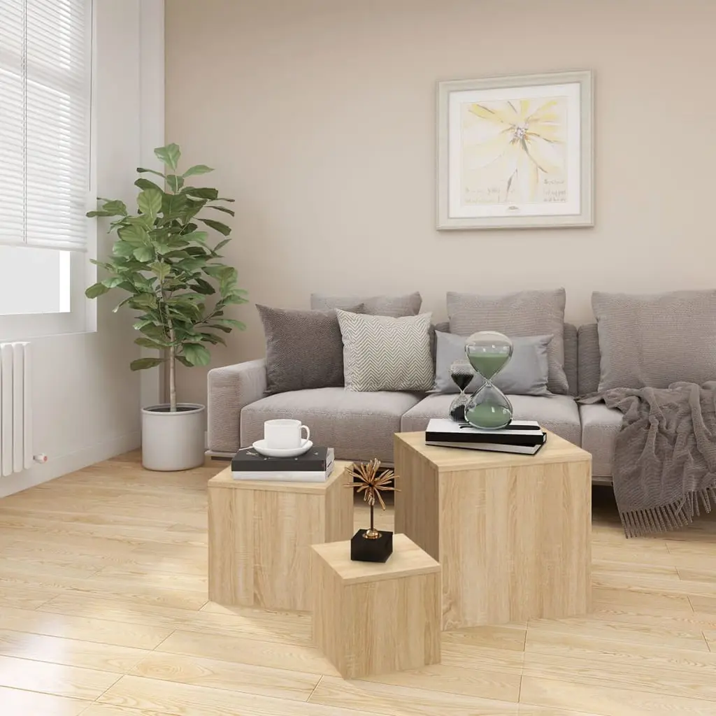 Vidaxl Side Table Set Of 3 Sonoma Oak Engineered Wood