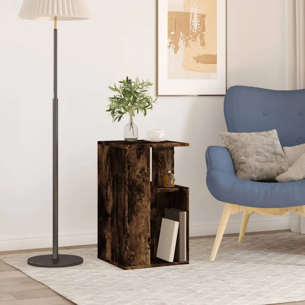 This Smoked Oak Side Table is a classy addition to your modern decor, featuring a sleek surface and simple elegance that brings character to any space. With its handy size and stylish finish, it’s perfect next to a sofa or chair, offering a great spot for drinks, books, or decorative bits, making it an ace choice for living rooms, hallways, and offices. Stylish Surface: The smoked oak finish boosts the table's look, fitting in with various decor styles.Space Efficient: At 13.8 in wide and long, this petite table is made for tight spots without skimping on function.Functional Design: Comes with plenty of storage options, perfect for tidying up any space while keeping essentials close.Durable Construction: Made from engineered wood, this ensures it stands up to moisture and wearing out over time.Perfect for All Rooms: Its flexible design means it can work in the living room, hallway, or office, catering to all kinds of needs.