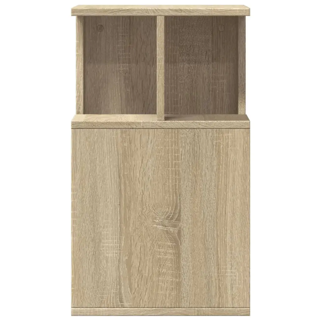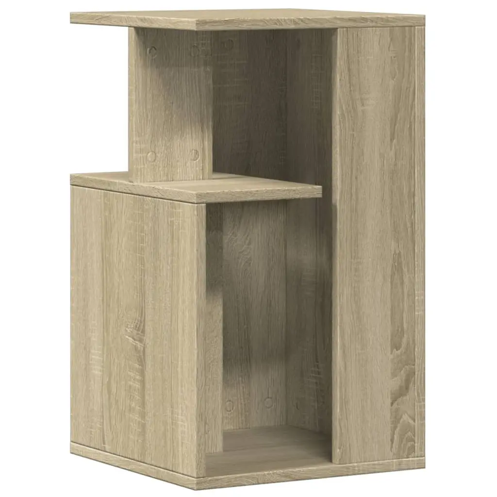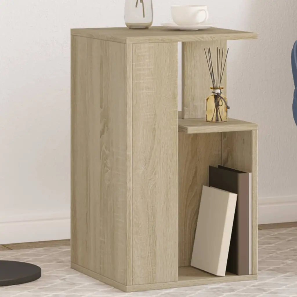 This side table combines practical functionality with a modern design, perfect for any living space. Made of sturdy engineered wood with a lovely Sonoma oak finish, it features a simple square design that will fit in nicely with your décor, while giving you a versatile space for all sorts of uses. Loads of Storage: The side table has a square surface of 13.8 in x 13.8 in, ideal for holding lamps, books, or drinks, plus a handy storage area below.Strong Build: Made from durable engineered wood, this table is built to last, perfect for everyday use.Stylish Look: With its matte and smooth finish, it adds a modern touch that fits into various decor styles, enhancing the vibe of any room.Flexible Use: Great for living rooms, hallways, or as a bedside table, it meets loads of needs—from serving coffee to displaying plants.Easy to Clean: Keeping it looking fresh is simple; just wipe it down with a damp cloth and steer clear of harsh chemicals.