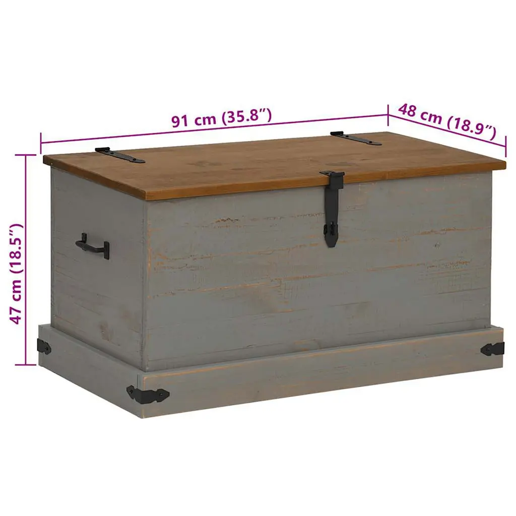 Vidaxl Storage Chest Grey Solid Pine Wood, Metal Medium Storage Chest