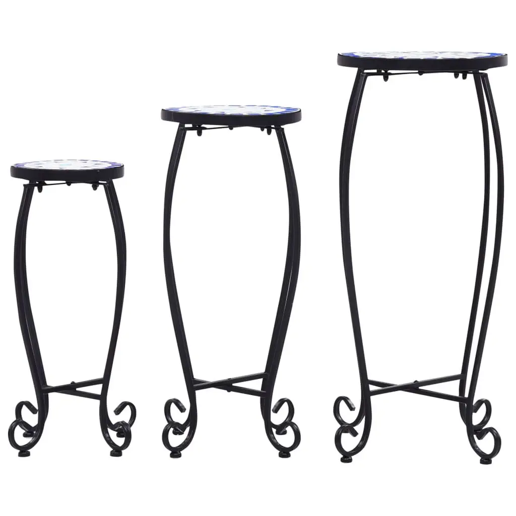 Vidaxl Table Set Of 3 Blue And White Iron And Ceramic Small