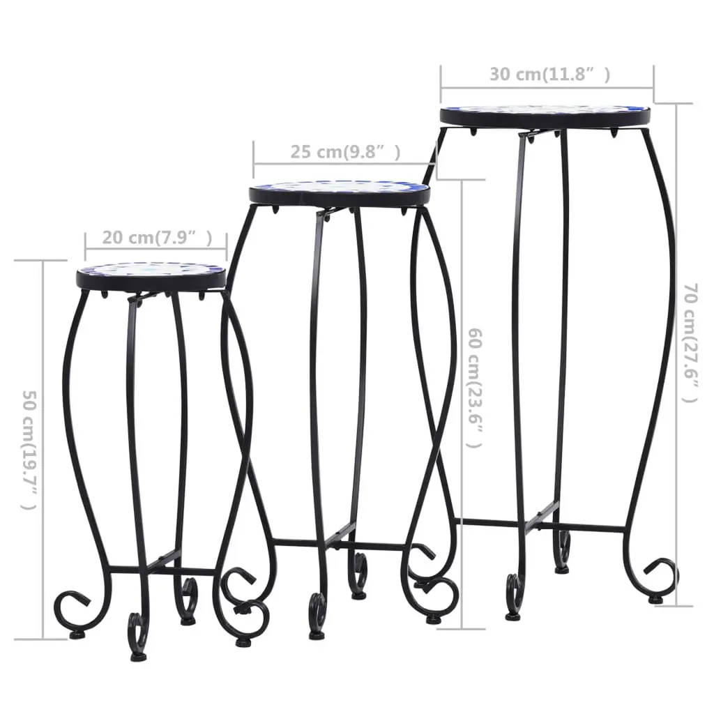This 3-piece Mosaic Side Table Set combines style and practicality, featuring lively blue and white tiles that make each table an eye-catching centerpiece for your balcony or patio. The round tables, made from strong iron and heat-resistant materials, are perfect for drinks, snacks, or decorative plants, ideal for quiet afternoons or small gatherings. Mosaic Design: Every table features an eye-catching mosaic pattern made of colorful ceramic pieces, adding a unique appeal to any indoor or outdoor area.Sturdy Construction: Crafted from high-quality iron and ceramic, they’re built to survive various weather, ensuring they last even outside.Versatile Use: Perfect for coffee or as stands, great for entertaining friends or enjoying a quiet solo evening.Bohemian Style: The quirky design brings a relaxed vibe to your home, fitting in with many decor styles.Compact Dimensions: At 11.8 in wide and 27.6 in tall, these tables are space-smart, ideally suited for patios, balconies, or small rooms.