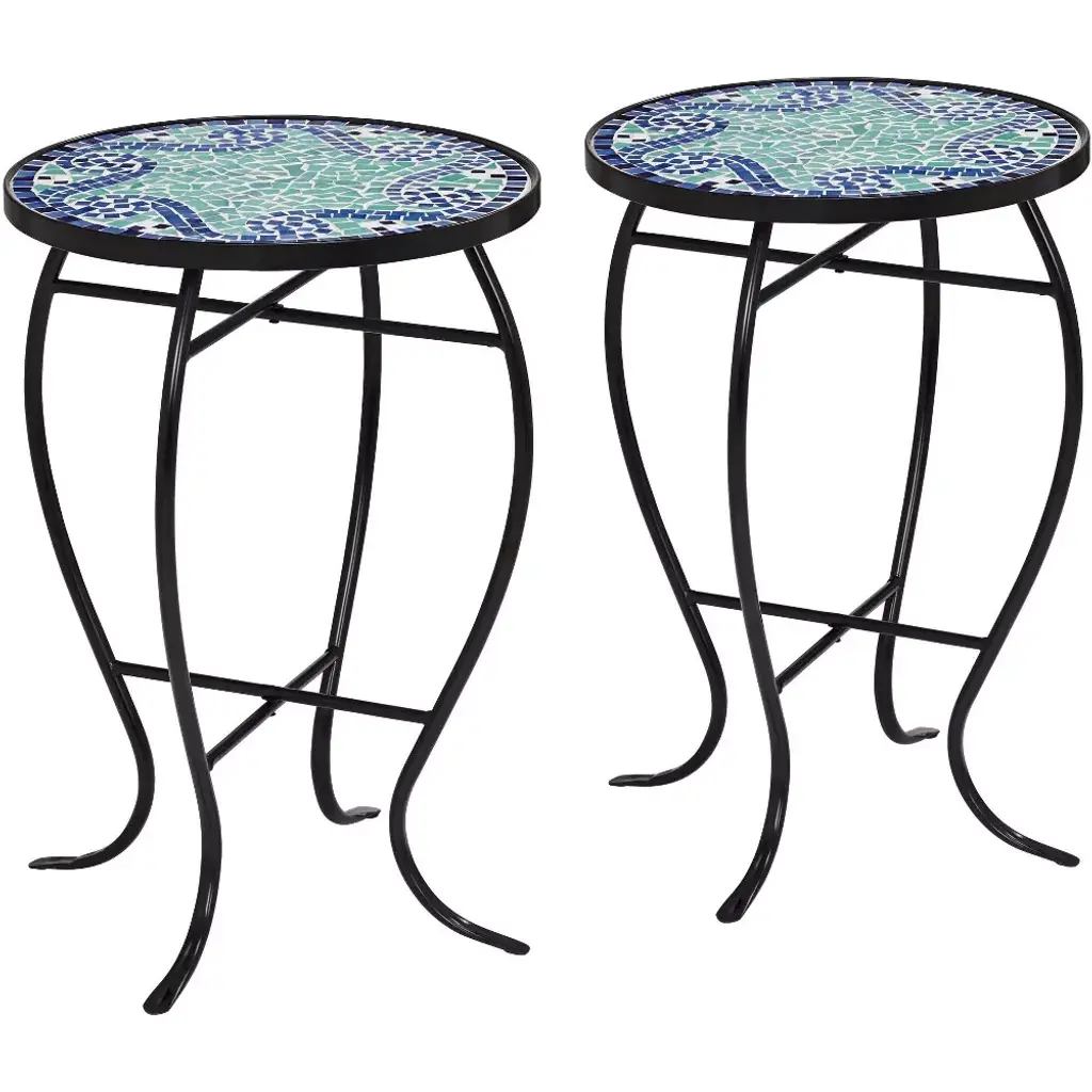 This set of three mosaic side tables blends art and utility, crafted nicely for both indoor and outdoor use. Each one has a unique geometric pattern in terracotta and white, ideal for sprucing up your balcony or garden while also displaying your favorite decorations. Stunning Mosaic Finish: The vibrant mosaic finish truly stands out, adding richness to any area. The mix of terracotta and white offers a lovely contrast that fits various decor styles. Range of Sizes: With options of small, medium, and large tables, this set gives you flexibility for serving coffee or showing off plants. You can arrange them based on your space and needs, blending style with function. Durable Materials: Made from strong iron and ceramic, these tables are built to endure both indoor and outdoor conditions, keeping their lovely appearance over time. Patterned Texture: The textured surface enhances the tactile experience and adds visual depth, making them a great talking point in social gatherings. Easy Maintenance: These tables are practical; just clean with a damp cloth to keep their lively colors and patterns fresh.
