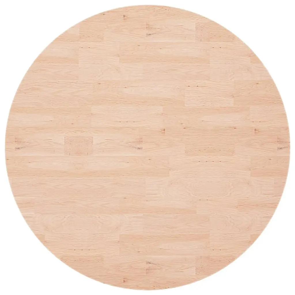 This rustic round table top, crafted from solid oak, is the perfect centerpiece for your dining, coffee, or side table. Its warm medium brown wood and sturdy build mean it fits perfectly into any indoor or outdoor area, making it a welcoming spot for friends and family. Durable Material: Solid oak construction ensures long-term use for both home and commercial settings.Customizable Finish: Unfinished surface allows for easy form-fitting customization, be that painting or lacquering to suit your taste.Versatile Design: Ideal for dining or coffee setups, this round top pairs well with different legs to create unique tables just for you.Rustic Appeal: The grainy texture and natural finish highlight rustic charm, making it a great addition to any space.Size Compatibility: At 35.4 in wide and 0.6 in thick, it works with various bases and suits different placements to fit your life.