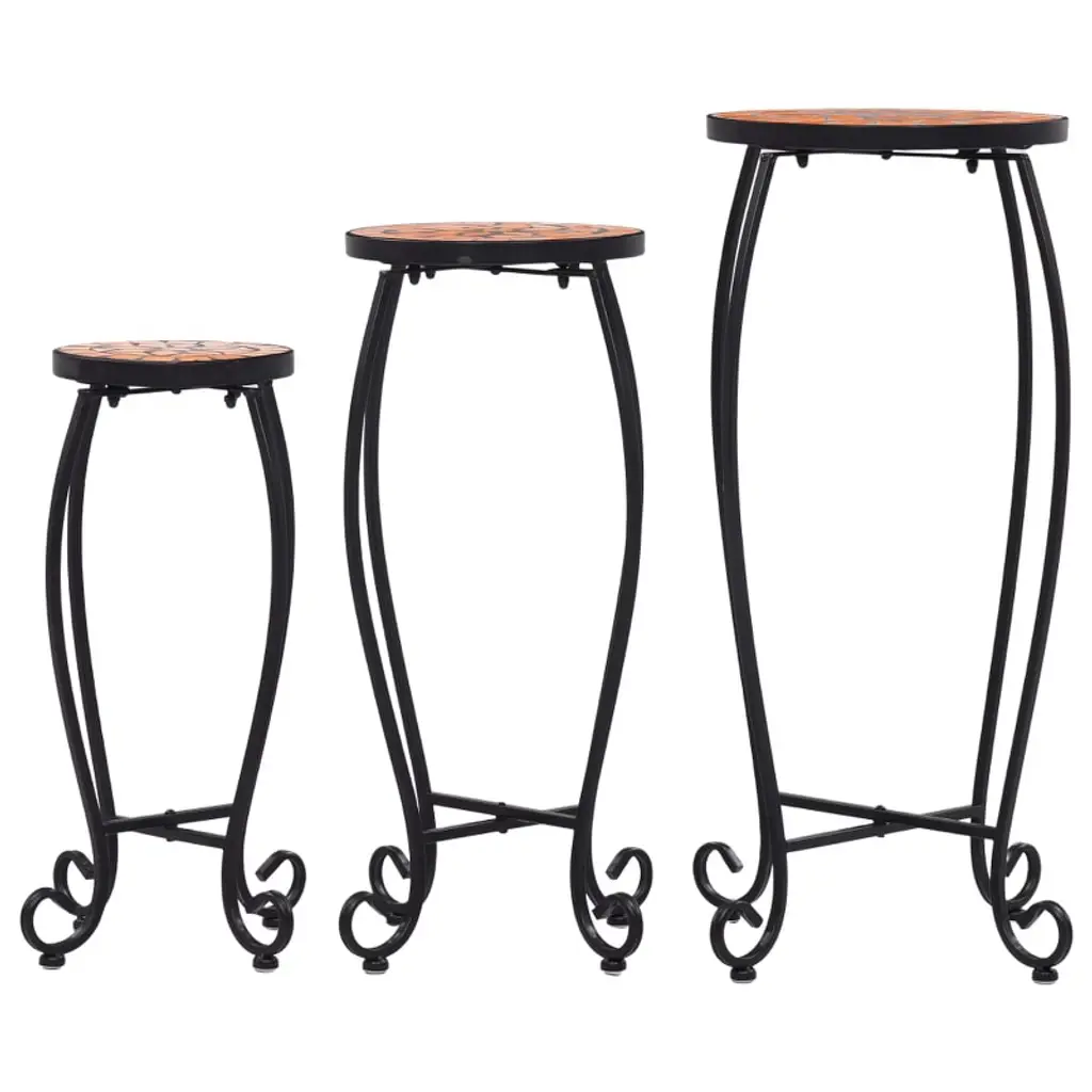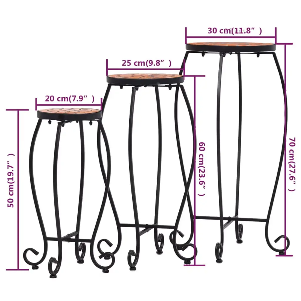 This plant table has weatherproof mosaic table top and elegant curved legs. It will surely become an eye-catcher in your garden, balcony, terrace, etc. The mosaic table can also be used as a flower plant or a side table. Its iron frame contributes to the sturdiness, while the ceramic table top is also easy to clean. It is very durable for a long-term service life. Delivery includes 3 tables. Please note this product is not suitable to be left outside in cold condition.